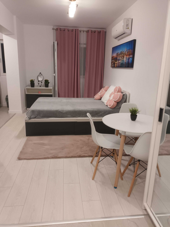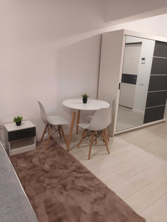 MUTARE IMEDIATĂ | 81 RESIDENCE | 5 MIN METROU BERCENI Prima chirie, bloc Nou! Cauți un loc modern, gata de locuit și cu facilități de vacanță? garsonieră (31 mp) situată pe Strada Biruinței 81, etaj 6 (Bloc 9). DE CE SĂ ALEGI ACEST SPAȚIU? DEPOZITARE SMART: Dulap generos de 1.80m (foarte bine compartimentat) – ai loc pentru tot! DOTĂRI COMPLETE: Pat 1.40m, frigider, aragaz, plită, masina de spalat. Doar îți aduci hainele! FACILITĂȚI RESORT: Ai în complex 2 PISCINE, restaurant, sală fitness și parc propriu. CONECTIVITATE: Doar 5 minute reale de mers pe jos până la pasarela Metrou Berceni. CHIRIE: 380 Euro/lună + 1 lună garanție.