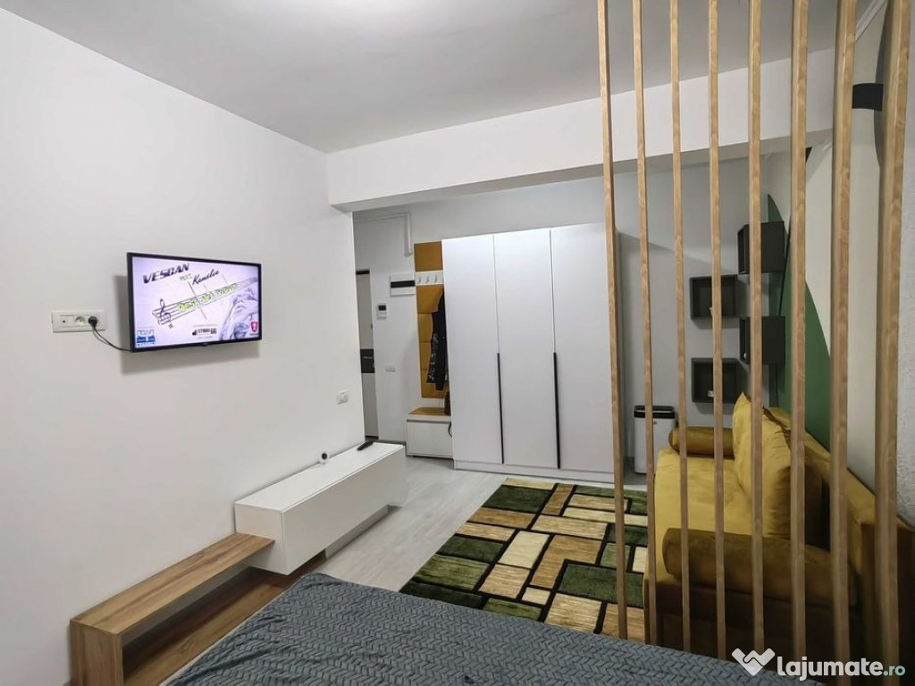 garsonieră complet mobilata și utilata modern, compartimentată cu două zone de relaxare și una de dormit.Se află într-un complex nou cu piscină.La 7minute de mers pe jos până la Metrou, Auchan, La doi pași, Mega Image aproape de bloc.Costuri de întreținere foarte reduse.Loc de parcare inclus.