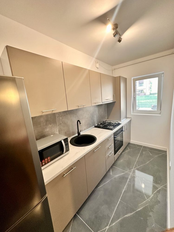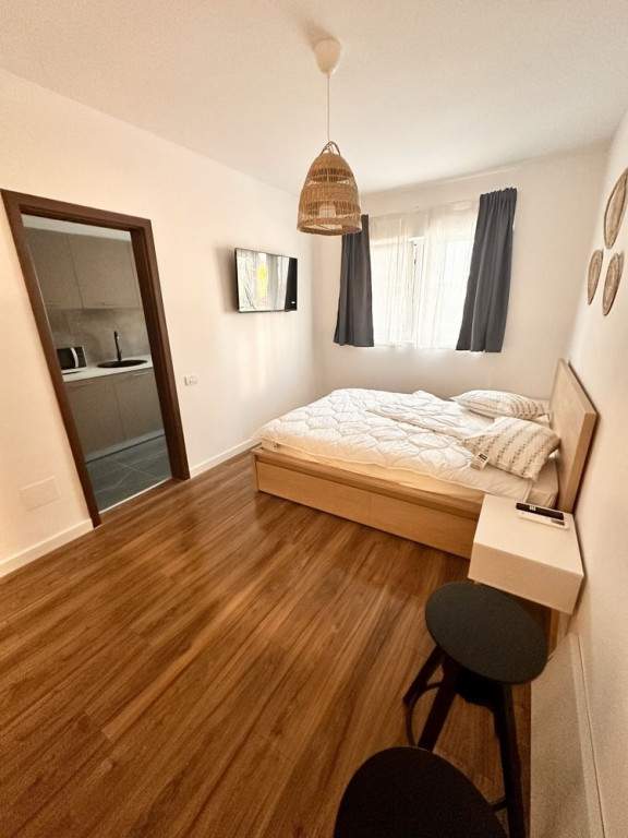 Garsonieră complet mobilată și utilată (IKEA + electrocasnice premium), situată la parterul unui bloc cu 7 etaje.