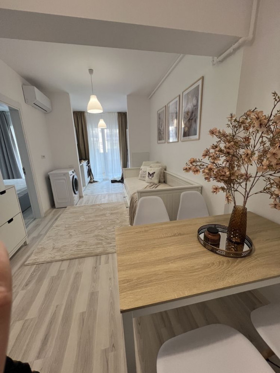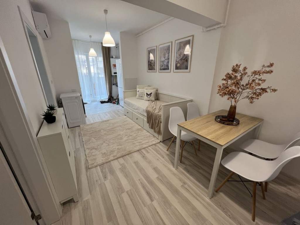 studio cu 2 camere, situat pe strada Biruinței 85, Bloc 1, etaj 3, într-un imobil nou, la doar 5 minute de mers pe jos până la stația de metrou Berceni. Este situat in complex rezidențial care îți oferă acces direct la piscina și restaurantul 8Infinity, aflate chiar la bloc! - Bloc nou, construcție finalizata decembrie 2025 - Studio nou, luminos, finisaje moderne - Electrocasnice noi (frigider, aragaz, cuptor, mașină de spălat, aer condiționat etc.) - Piscină exterioară pentru relaxare - Restaurant chiar în incintă – ieși din bloc și ești la masă Locație excelentă – aproape de metrou, de magazine , de sala de sport Kom și de mijloace de transport.