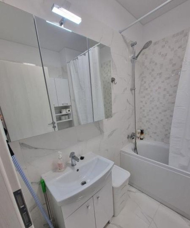 garsoniera in bloc nou 2025, str. Biruintei 87, Bucuresti, statia metrou Berceni, 40 mp: hol, baie, camera de zi, bucatarie, balcon, et. 6 din 6 cu acoperiş, AC, CT, 2 TV, masina de spalat cu uscare, frigider, cuptor gaz, plita inductie + gaz, cuptor microunde, contoare gaz, curent, apa. Mobilier nou modern, primul proprietar. Luna in curs plus 1 luna garantie
