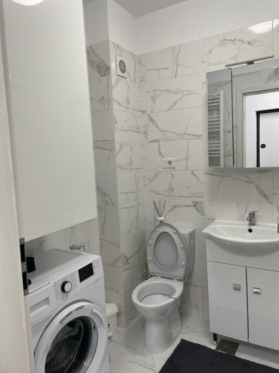 Garsoniera de închiriat pe strada Biruinței nr. 25, la etajul 3/6 intr-un bloc prevăzut cu lift. Garsoniera este mobilată cu interior designer, este utilată complet, dată în folosință în august 2023. Garsoniera are hol (3,4mp), camera (19,7mp), bucătărie (6mp), baie (3,9mp) si balcon (8mp). Garsoniera deține centrala termică, aparat de aer condiționat, mașină de spălat rufe, TV, aragaz pe gaz, cuptor electric, hotă, frigider, aspirator, uscator rufe. Ferestrele sunt dotate cu plase de tantari și rulouri exterioare. Această garsonieră este spațioasă, modern mobilată si cu multe spații de depozitare. Parcarea supraterana este inclusă în preț. Nu se acceptă animale de companie. Chiria este de 390 euro/ luna și 390 euro garanție. Închiriere cu contract declarat la ANAF pentru perioadă de minim 1 an.