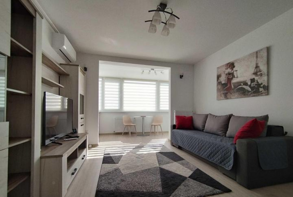 doua camere tip studio, situat in bloc mic de 3 etaje cu LIFT , cochet , cu doar 15 apartamente in total, situat pe str. Biruintei. Apartamentul este nou, dotat si utilat complet, inclusiv centrala proprie, aer conditionat, masina spalat rufe, uscator de rufe, etc si dispune de LOC DE PARCARE propriu. Izolatia termica a apartamentului este supradimensionata , dotat inclusiv de geamuri TRIPAN ( 3 foi de geam in loc de doua asa cum este la un termopan obisnuit) , asta ducand la costuri mici cu utilitatile. In apropriere , la 2 -3 min sunt magazine si restaurante (Penny, Mega Image, La Doi Pasi,etc.) iar metroul Dimitrie Leonida este la 13-14 minute de mers pe jos. Disponibilitate pentru mutare imediata.