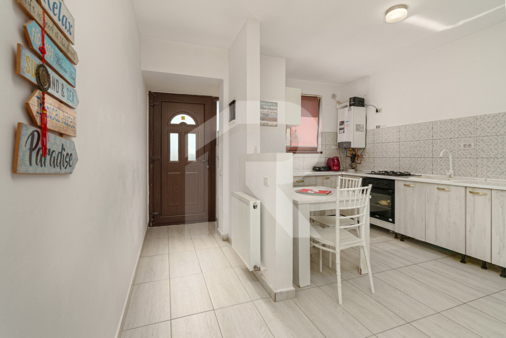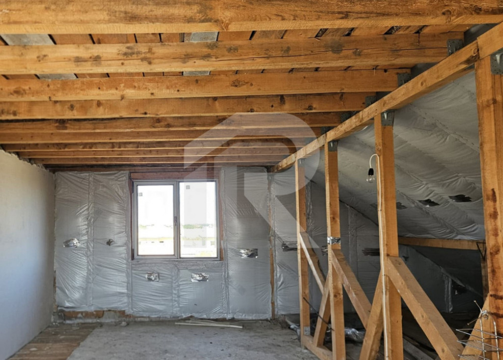 În complexul Dealul Verde, pe stradă asfaltată, între alte case noi și vecinătăți îngrijite. Casă tip duplex parter + etaj, cu living generos, bucătărie, 2 dormitoare spațioase și baie cu cadă și geam; o locuință practică, luminoasă, gata de folosit imediat. Dormitoare decorate în tonuri deschise, pardoseli moderne, mobilă albă, baie complet utilată, mașină de spălat și finisaje neutre ușor de adaptat oricărui stil. Mansardă deja izolată, în curs de amenajare, cu ferestre și structură realizată; spațiu excelent pentru încă 1–2 camere, birou, zonă de hobby sau depozitare. Lot de 300 mp cu curte în față și în spate, împrejmuită, cu beton perimetral și zone verzi ce pot fi transformate ușor în grădină, loc de joacă pentru copii sau terasă acoperită pentru relaxare. Locuri de parcare amenajate în fața casei, chiar lângă poartă, plus acces auto facil de pe strada asfaltată. Id intern: VR19773