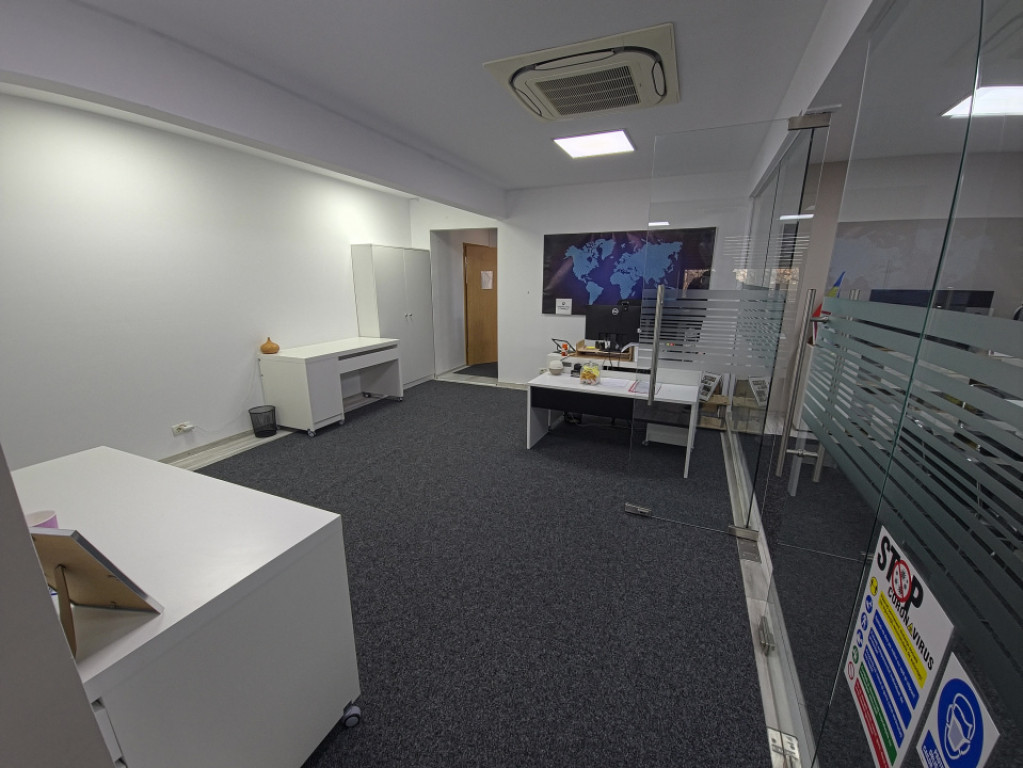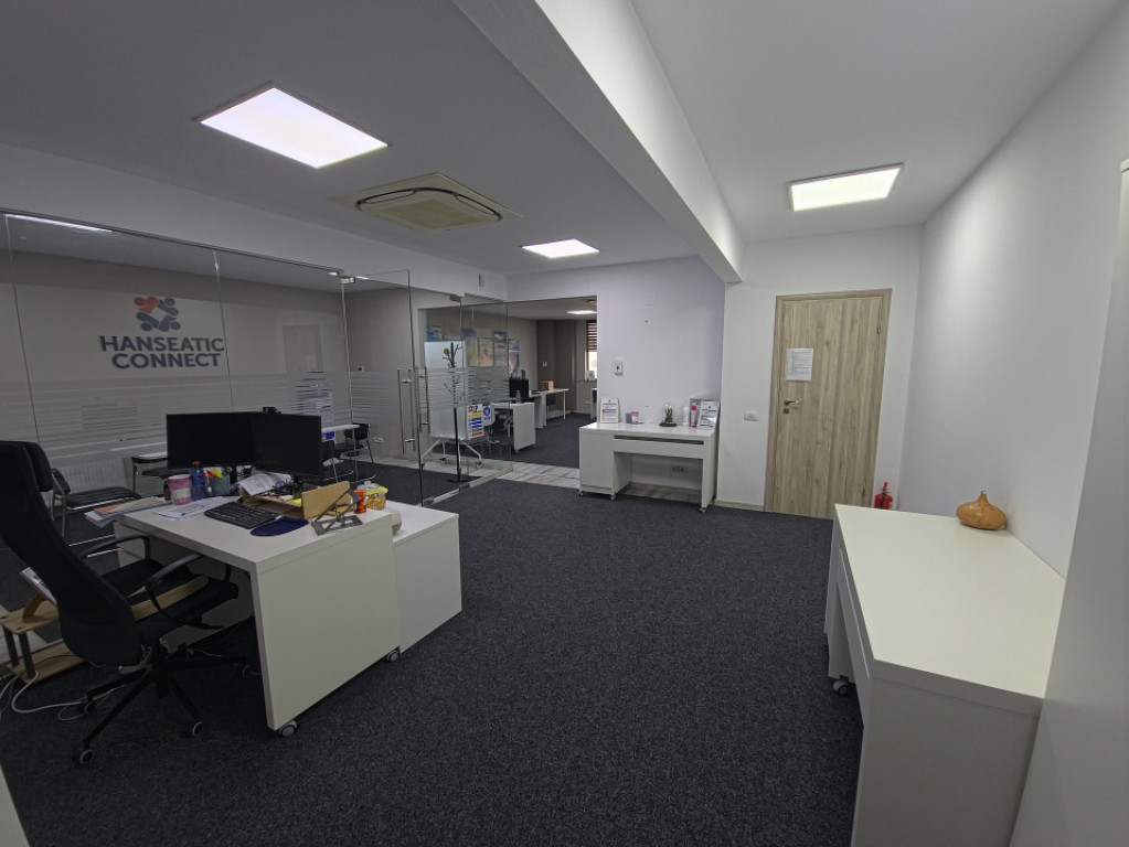 Haus Imobiliare vă propune spre închiriere un spațiu de birouri modern, situat într-o clădire de birouri premium, amplasată pe Bulevardul Mamaia, în imediata apropiere a Delfinariului, una dintre cele mai bine cotate zone de business din Constanța. Imobilul este reprezentativ, cu standarde ridicate de confort și imagine corporativă, ideal pentru companii care doresc un sediu profesional, bine poziționat. Detalii spațiu: Suprafață totală: 80 mp Etaj: 1 Acces: liftul clădirii se oprește la nivelul casei scării Compartimentare modernă, cu pereți din sticlă: 2 încăperi mari tip open-space una dintre încăperi este parțial delimitată cu pereți din sticlă, fiind ideală pentru sală de consiliu / meeting room Facilități și dotări: grupuri sanitare separate (femei / bărbați), situate pe casa scării chicinetă comună, tot pe casa scării spațiu luminos, aerisit, cu potențial excelent de organizare a posturilor de lucru finisaje moderne, aspect profesional Mobilier și utilități: utilitățile sunt incluse în prețul chiriei mobilierul de birouri va fi schimbat (mobilierul din fotografii aparține chiriașilor actuali și nu face obiectul închirierii) Avantaje: adresă premium – Bulevardul Mamaia clădire modernă, cu imagine corporativă compartimentare eficientă, cu sticlă costuri predictibile (utilități incluse) ideal pentru firmă mică sau medie Ideal pentru: sediu de firmă, birou de consultanță, IT, marketing, HR, contabilitate, agenție imobiliară, arhitectură, firmă de servicii, start-up sau activități similare. Id intern: P226094
