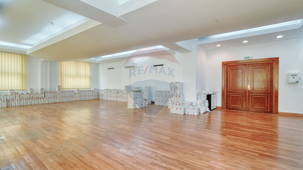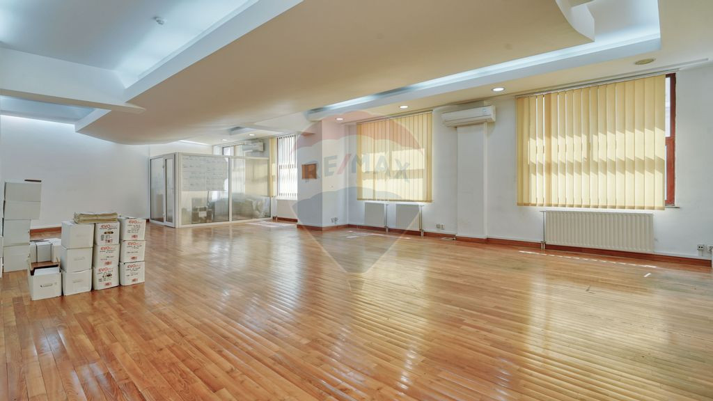 Vă oferim pentru închiriere un spațiu de birou în Brașov, zona ultracentrală, în clădire de birouri amplasată în zona de maximă vizibilitate, pe Bd. Eroilor, în apropiere de Prefectura Brașov, 200 m de Primăria Brașov, 150 m de Modarom și de zona pietonală a Centrului Vechi, 150 m de Teatrul Sică Alexandrescu. Biroul de închiriat în suprafață de 103 mp este situat la mezaninul clădirii. Acces din hol comun. Înălțime birou 2,30 m, 2,40 m. Finisaje: pardoseli parchet, pereți lavabil, ferestre termopan cu jaluzele verticale și rulouri, tavan casetat și corpuri de iluminat cu LED tip office, uși interior termopan și lemn. Grupuri sanitare duble. Clădirea de birouri a fost construită în 2005, pe structura beton și sticlă cu suprafețe mari vitrate, orientate spre Tampa și spre Bd. Eroilor, având eficientizate consumurile de utilități prin însăși structura constructivă. Conform certificatului energetic: clasa energetică A, consumul de energie primară 226, indicele de emisii echivalent CO2 39. Clădirea de birouri dispune de autorizare ISU, monitorizare video pentru căile de acces în clădire, sistem de detecție și alarmă la incendiu, instalație de climatizare și centrală termică, aparate de aer condiționat, rețea internet și telefonie configurate în fiecare birou. Preț de închiriere 1,133 euro + TVA lunar la care se adaugă contravaloarea utilităților. Aveți posibilitatea să închiriați și suprafețe mai mari, în funcție de natura activității dumneavoastră astfel încât să se afle în concordanță cu bugetul și nevoile stabilite.
