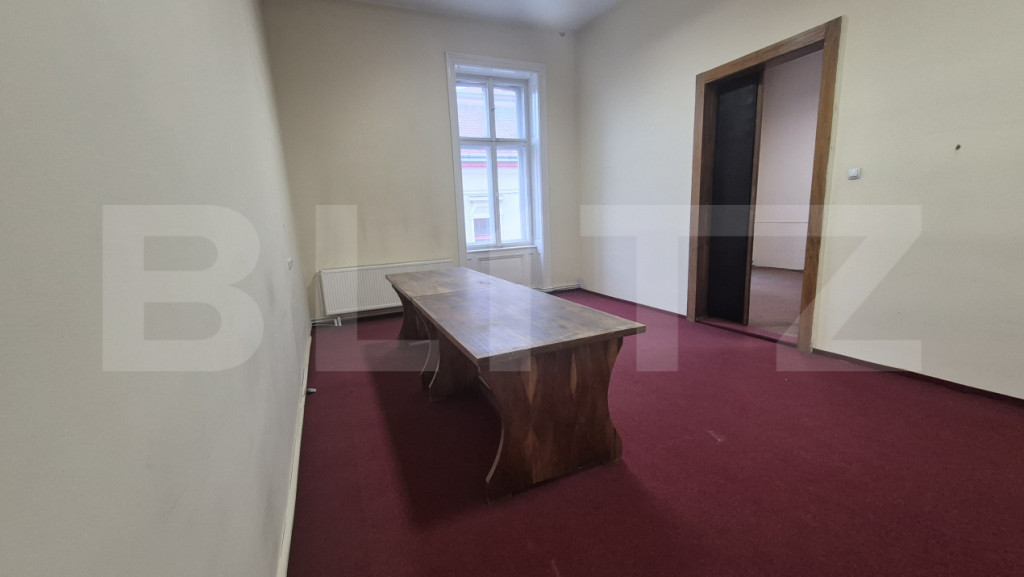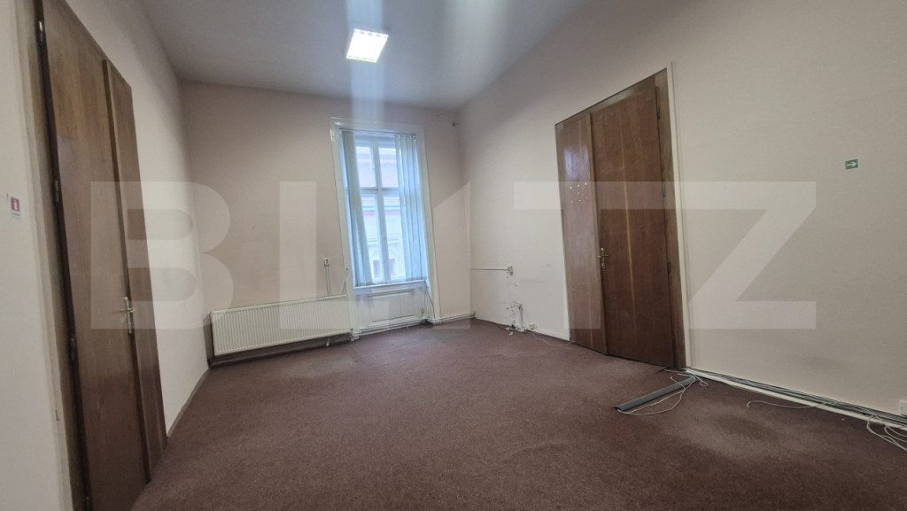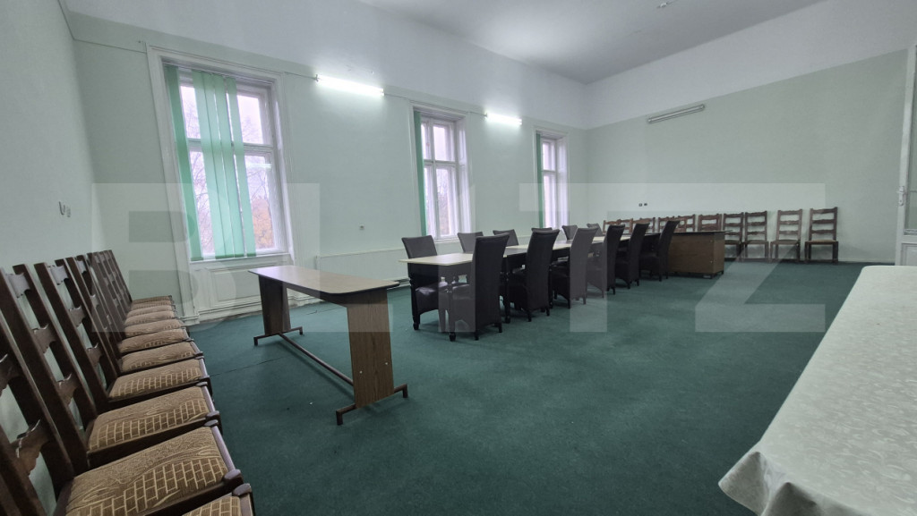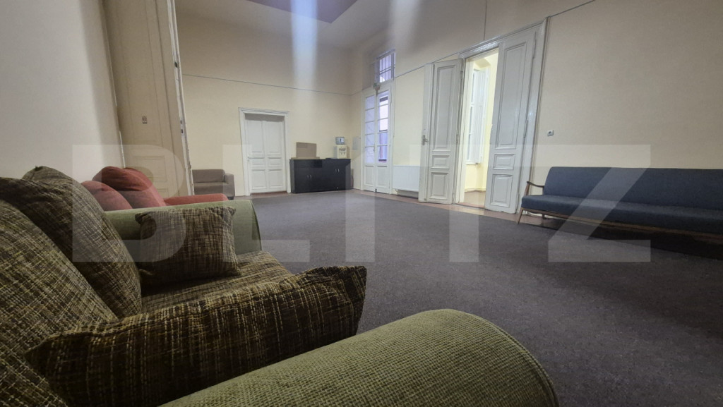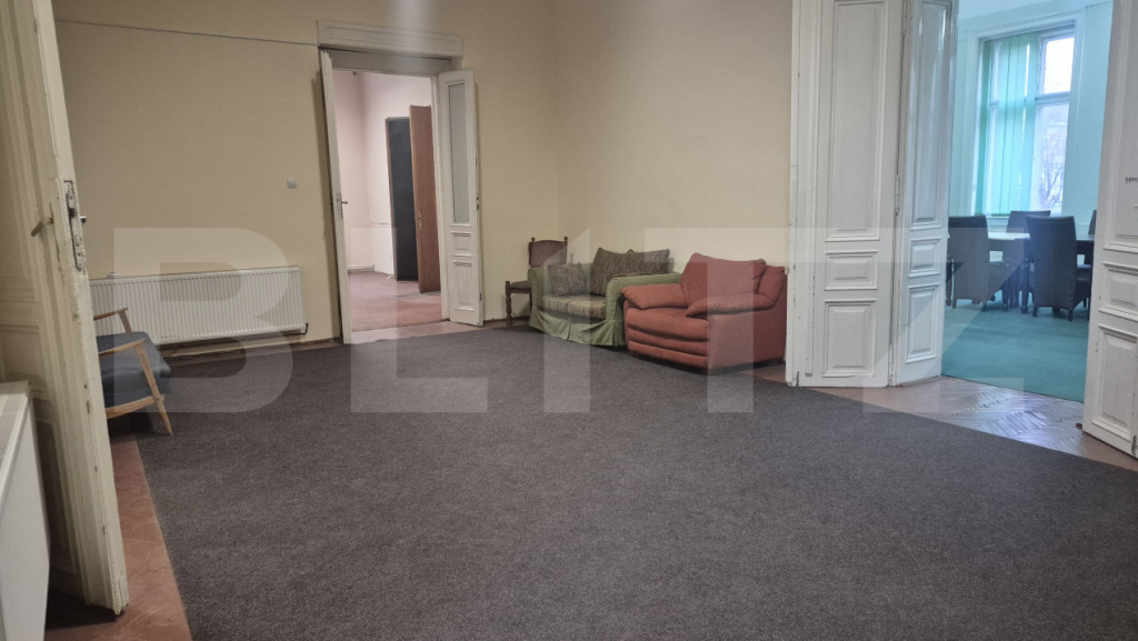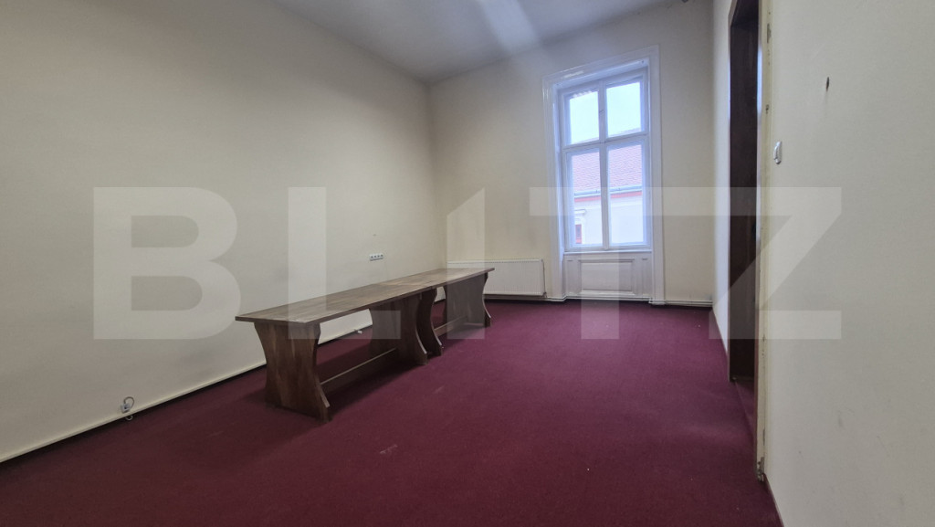 Blitz va ofera spre inchiriere un birou de 255 mp aflat intr-o cladire istorica din municipiul Satu Mare situata in inima orasului. Cu o vedere spectaculoasa catre parcul central, la doi pasi de toate punctele de interes al urbei noastre, acest spatiu este ideal pentru desfășurarea activităților de birou, consultanță, contabilitate, cabinet individual sau alte activități pe care vi le doriti si care pun accent pe o poziționare excelentă. Compartimentare: 7 incaperi. Unele sali sunt suficient de mari pentru a organiza o conferinta, o lansare de carte, o sedinta la care participa pana la 50 de persoane, un training organizat si alte activitati pe care vi le doriti in cadrul activitatii desfasurate. Alte incaperi sunt mai mici, mai compacte, mai elegante asigurandu-va asfel confortul, eleganta si intimitatea cautate. Alte avantaje: -Acces facil din puncte cheie ale orașului -Zonă liniștită, dar centrală –Ideală pentru activități profesionale ???? Contactează-ne pentru mai multe detalii sau pentru a programa o vizionare! Cod ofertă / ID BLITZ: P160392 Id intern: P160392