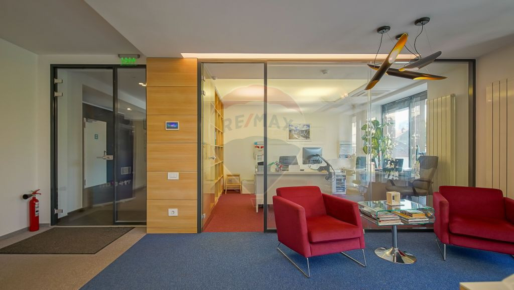 Birou premium de vânzare în Neorama, 13 Decembrie — 263 mp utili + terasă exclusivă de aproximativ 230 mp. Produs rar, complet mobilat și pregătit pentru operare imediată. Vă prezentăm un spațiu de birouri clasă A cu un avantaj unic pe piață: o terasă superb amenajată, cu o suprafață de aproximativ 230 mp, aflată direct deasupra biroului și oferită în folosință exclusivă, odată cu achiziția spațiului. Ideală pentru evenimente corporate, zone de relaxare, outdoor work, sesiuni creative sau spații de socializare premium pentru angajați ori clienți. Interiorul spațiului (263 mp utili) este compartimentat inteligent și complet echipat pentru operare imediată: recepție / front-office două săli de ședințe birouri departamentale (contabilitate, aprovizionare, C&M, proiectare etc.) oficiu / chicinetă vestiar arhivă două grupuri sanitare două terase mici conectate la spațiul interior Terasa principală (aprox. 230 mp) reprezintă un spațiu exterior spectaculos, deja amenajat, cu acces direct, ideal pentru: zonă de lounge corporate întâlniri în aer liber team-building-uri interne evenimente private grădină urbană sau outdoor office branding vizibil și exclusivitate Finisaje & dotări premium: pereți din sticlă securizată & compartimentări fonoabsorbante mochetă trafic intens + gresie ferestre care se deschid, lumină naturală pe toată durata zilei tavan casetat, iluminat LED HVAC complet + aport aer proaspăt sistem de ventilație, încălzire, climatizare pe zone internet & infrastructură IT/Telco sistem de sonorizare integrat mobilier modern de birou, complet inclus Clădirea Neorama oferă servicii profesionale: administrare, curățenie, securitate, acces controlat pe cartele, CCTV, afişare logo pe clădire, acces persoane cu dizabilități, parcări publice în proximitate. Amplasat pe strada 13 Decembrie, în zona Onix–Neorama, unul dintre cele mai accesibile și vizibile puncte de business din Brașov. Spațiul este disponibil imediat. O soluție extrem de rară pe piață: birou complet utilat + o terasă privată uriașă, perfectă pentru branding și experiență premium. Pentru detalii și vizionare: Florin Ciche – Consultant Imobiliar, RE/MAX Central