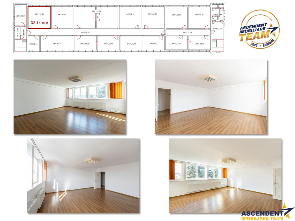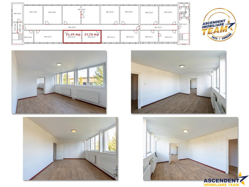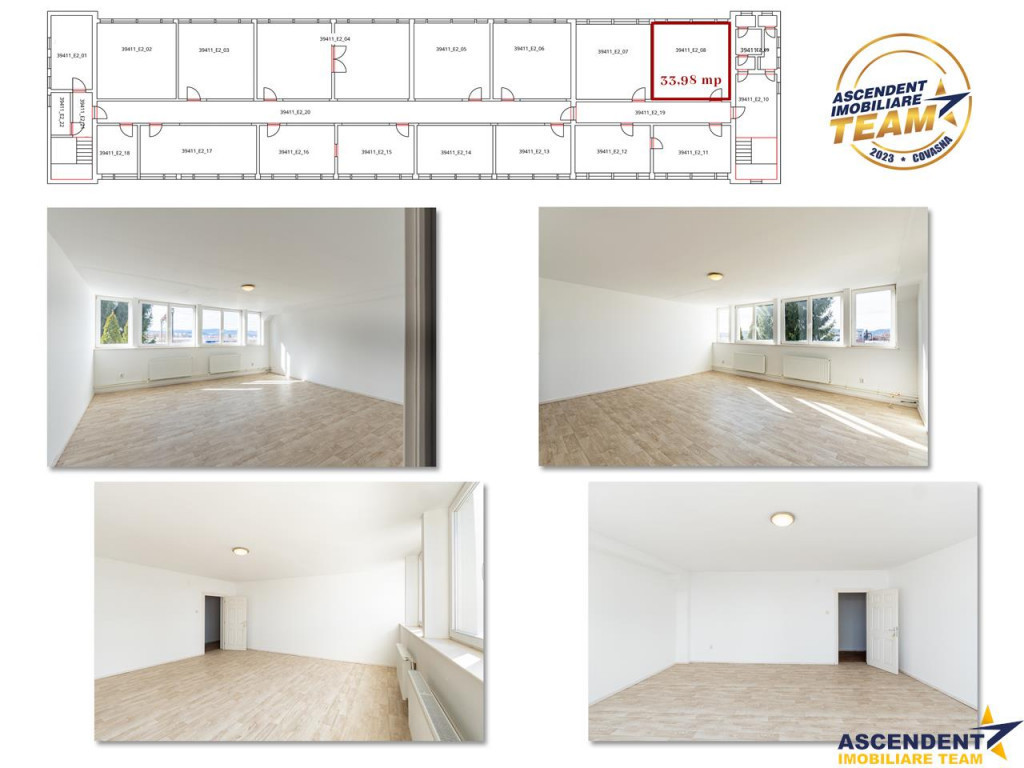 Comision inchiriere: 50% tva din contravaloarea unei chirii lunare ASCENDENT IMOBILIARE VA PREZINTA Birouri care iti duc afacerea la nivelul urmator! In mediul de business actual, spatiul in care iti desfasori activitatea spune multe despre compania ta. De aceea, alegerea unui birou potrivit nu inseamna doar metri patrati, ci imagine, confort si eficienta. In Sfantu Gheorghe sunt disponibile spatii de birouri moderne, cu suprafete cuprinse intre 21 si 35 mp, concepute pentru a raspunde nevoilor profesionistilor si companiilor aflate in dezvoltare. Lumina naturala, compartimentarea eficienta si atmosfera profesionala creeaza un cadru ideal pentru intalniri de business, activitati administrative sau consultanta specializata. Fie ca esti antreprenor, consultant sau reprezinti o companie in crestere, aceste spatii iti ofera flexibilitatea necesara pentru a-ti organiza activitatea exact asa cum iti doresti. Film prezentare:https://www.youtube.com/watch?v=HsaUYSYOwx4 Matteport:https://my.matterport.com/show/?m=Toahf8Teqa9 Beneficii care fac diferenta: * Birouri cu suprafete variate ndash; intre 21 si 35mp (21.46; 21.79; 34.56; 35.14)) Pretul este de : 8 euro/mp * Spatii luminoase, usor de adaptat diferitelor activitati profesionale * Mediu de lucru elegant si profesionist * Potrivite pentru consultanta, IT, servicii financiare, juridice sau administrative * Acces facil si pozitionare convenabila in oras Aceste spatii nu sunt doar birouri, ci un cadru care sustine dezvoltarea si imaginea afacerii tale. Pentru informatrii suplimentare si programarea unei vizionari, echipa Ascendent Imobiliare ndash; Covasna iti sta la dispozitie pentru a identifica solutia potrivita nevoilor tale. Invitam colegii la colaborare! Consilier dedicat alesei oferte: domnul Lorincz Lehel Telefon/WhatssApp: 0723 369 607 Detalii, fotografii suplimentare, precum si alte variante similare exclusive: www.ascendentimobiliare.ro