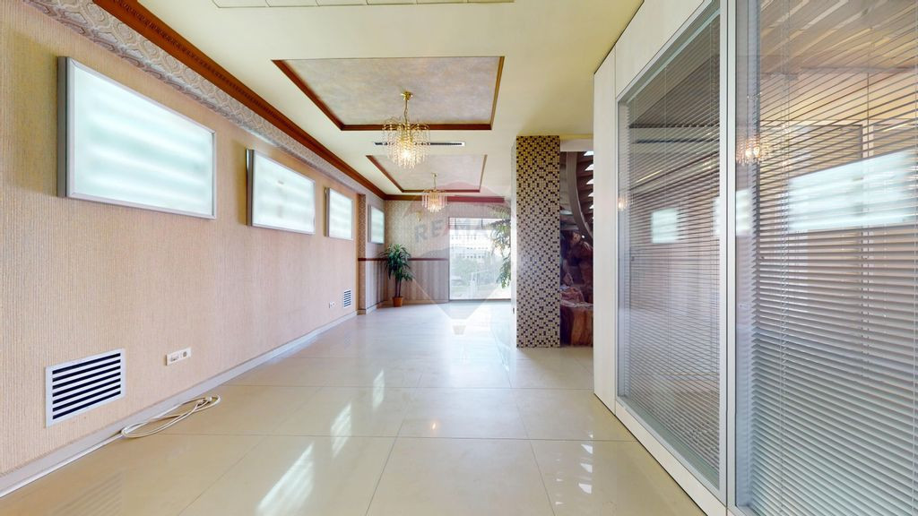 Vă prezentăm un spațiu de birouri premium, situat pe etajele 2 și 3 ale unei clădiri moderne, amplasată strategic într-o intersecție cu vizibilitate maximă în Brașov, în intersectia străzilor Iuliu Maniu, Castanilor și 13 Decembrie, o locație de prestigiu, cu un flux intens de trafic către Centrul Istoric, ce asigură vizibilitate și acces facil, ideale pentru o companie care își dorește să se poziționeze ultracentral. La parter și etajul 1 își desfășoară activitatea Exim Banca Românească, iar în imediata vecinătate se află Aula Universității Transilvania, Restaurant Ceasu' Rău, Secția de Poliție nr. 1, Casa Corpului Didactic, Facultatea de Matematică și Informatică, precum și parcări publice. Conceput pentru companii de elită care apreciază lumina naturală, transparența și designul contemporan, acest spațiu de 309,7 mp, dispus pe 2 etaje, oferă un mediu de lucru luminat generos prin pereții cortină din sticlă reflectorizantă, cu panoramă urbană deosebită și scara interioară semi-elicoidală, cu trepte de sticlă securizată și balustrade inox elegante care unește cele două niveluri într-un flux armonios și sofisticat. Imobilul cuprinde în total 8 birouri, 2 grupuri sanitare, 2 holuri și 2 săli open space, oferind acces facil prin lift dedicat, scara interioară și scara de incendiu. Fiecare etaj are patru birouri cu compartimentări din sticlă cu rame metalice la etajul 2 si rigips la etajul 3, care definesc spatii moderne, deschise și conectate vizual si cate un grup sanitar cu un design artistic remarcabil, cu mozaic vibrant și retroiluminare ce creează ambianță și stil. Elementul spectaculos este fântâna decorativă din zona open space a etajului 2, ce aduce un aer de wellness și rafinament, perfect pentru a impresiona clienții sau a inspira creativitatea echipei dumneavoastră. Complementar, pardoselile din marmură și gresie porțelanată, mochetă de trafic intens, sistem de climatizare răcire, încălzire, sistem de alarmă și supraveghere video, vă oferă facilități și imagine pe măsura aspirațiilor unei companii de top. Toate utilitățile contorizate: apă, gaz, curent electric. Aveti posibilitatea personalizării fațadei cu logo luminos. Parcări publice în apropiere imediată, precum și două locuri de parcare rezervate exclusiv pentru dumneavoastră. Vă invităm să alegeți acest spațiu care reflectă excelență, spirit artistic și viziune modern, un sediu reprezentativ ce vă va poziționa în centrul atenției afacerea dumneavoastră. Contactați-ne, sa programam o vizionare și asigurați-vă prezența în acest nod strategic al Brașovului, la prețul de 3097 euro lunar, TVA 0.