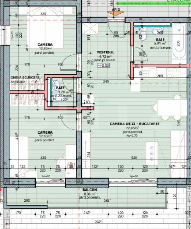Bloc Nou Apartament cu 3 camere Parter nr 2