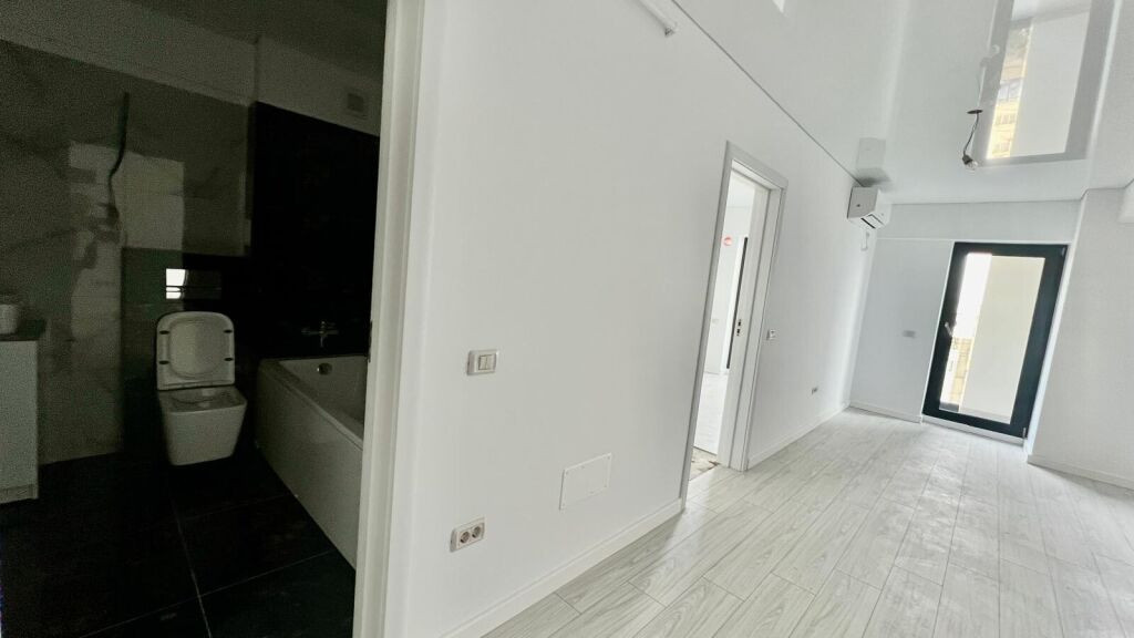 MUTARE IMEDIATA Apartament cu o camera spatioasa, cu o suprafata de 46 mp din care 5,40 mp de balcon deschis, accesul in acesta se face atat din bucatarie, cat si din camera. Bucatarie de 10,50 mp, camera de 16,8 mp, baie cu cada de 5 mp. Un proiect imobiliar care beneficiază de o tehnologie ingenioasă ce asigură o structură de rezistență și sprijinire a zonei limitrofe mult mai sustenabilă, și anume – structura din pereți mulați. Structura pe cadre Fundatii de tip radier general – dala groasa de beton armat Structura din beton C30/37, cca 5850 mc beton Structura din oțel beton BST500S, PC 52, Ob 37, cca 600 tone fier. Acoperirea cu beton a armaturilor de rezistenta, pereti și stâlpi (5,0cm; 3,5cm) Suprastructura cu sistem structural constituit din cadre de beton armat: stâlpi, grinzi și plăci de beton armat Facilități și dotări: Tavane tip Barrisol Tâmplărie pvc Schuco, culoare gri antracit, dotată cu: profil Schuco CT 70, feronerie premium, sticlă tripan 4 season 4S, sticlă Lowe, oțel montant de 2mm, deschidere dublă pentru ferestre și uși. Aceste dotări asigură un confort termic și acustic excepțional, aducând un plus de eleganță și funcționalitate la fiecare fereastră și ușă. Încălzire prin pardoseală cu sistem TECE – o tehnologie modernă pentru confortul tău termic. Aer condiționat pentru fiecare apartament în parte Ascensoare Schindler de ultimă generație Balustrade din sticlă securizată la balcoane Zone de depozitare generoase Centrală termică de apartament prin condensare Ariston– eficiență și economie într-un design compact. Rezervor vas wc suspendat cu sistem Italian ALCA– rafinament și utilitate în fiecare zi. Facilități complex: Parcare subterană – mașina ta mereu în siguranță Spațiu exterior comun – amenajat cu vegetație Sală de fitness– stil de viață sănătos chiar în incinta complexului Iluminat exterior– atmosferă plăcută și sigură în orice moment al zilei Stații de transport public vizavi – conexiuni rapide cu orașul PRET FARA TVA