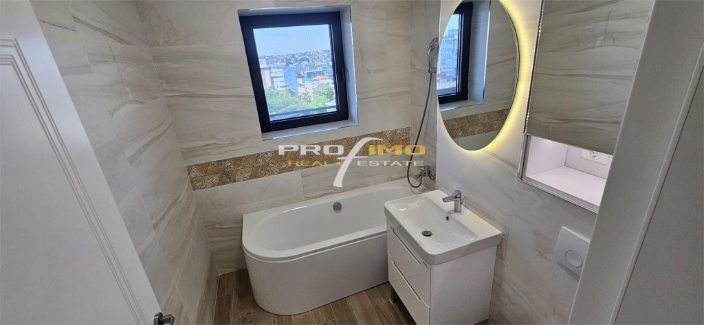 Profimo Real Estate va prezinta spre inchiriere un apartament exclusivist, cu 2 camere, mobilat NOU modern, utilat NOU premium. Se inchiriaza numai pe termen lung, iar la semnarea contractului de inchiriere se achita 2 garantii. Se emite factura atat pentru chirie si garantie, cat si pentru utilitati (gaze, curent, intretinere). Posibiliate loc de parcare subteran extra pret.