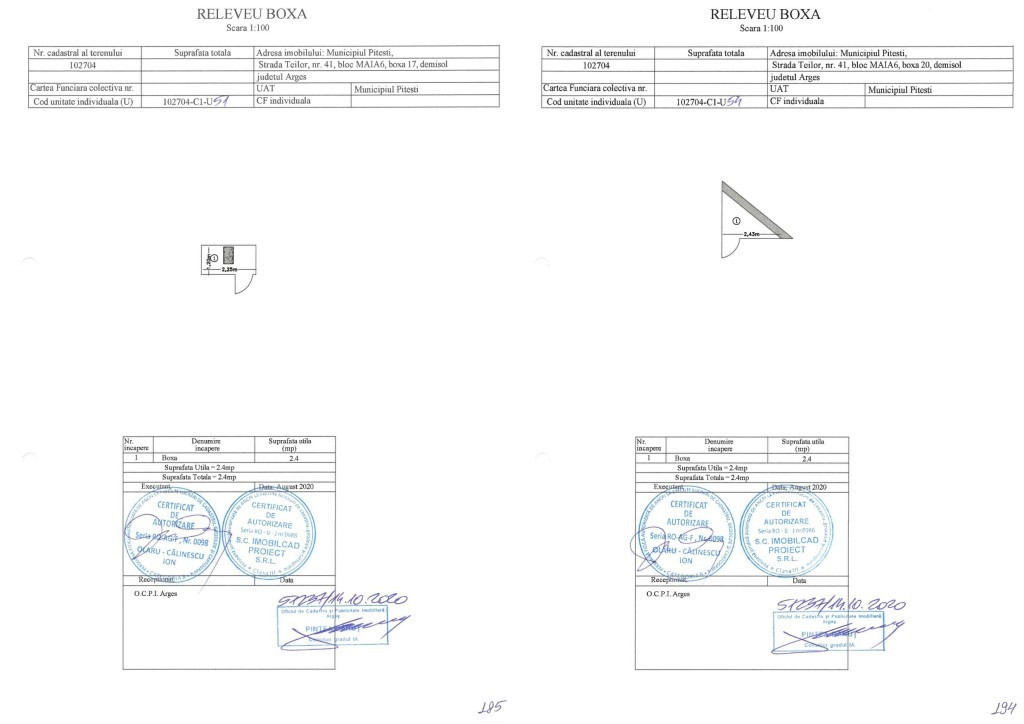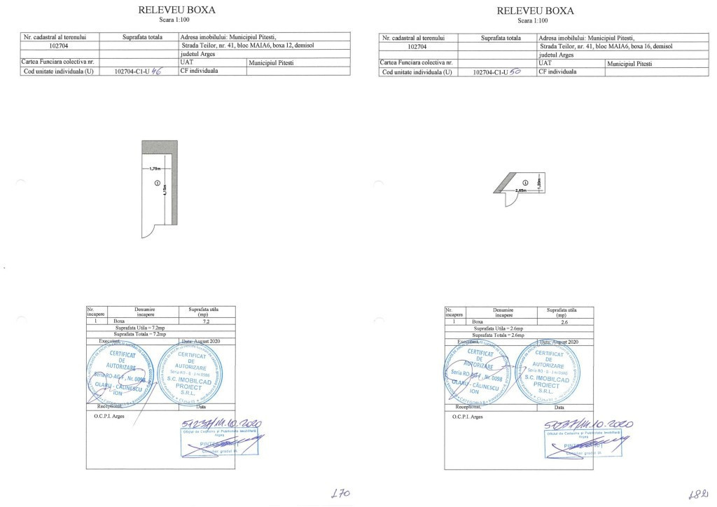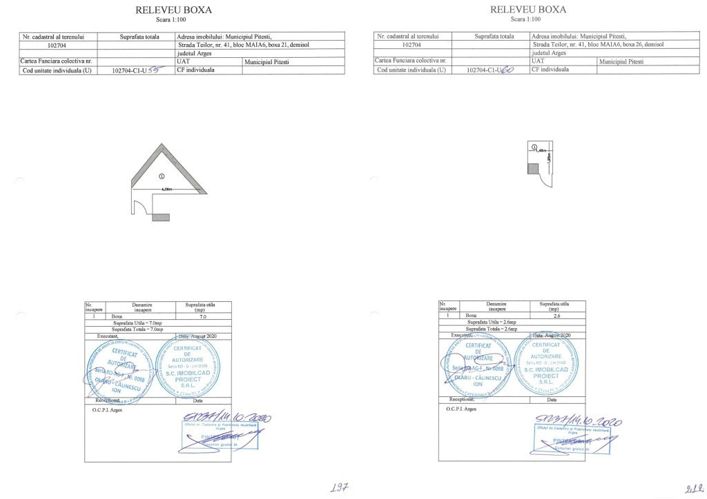 Se vând boxe situate în subsolul unui bloc nou construit în 2020, pe Strada Teilor, Pitești. Suprafațele disponibile sunt cuprinse între 2.45 mp și 5.7 mp, iar prețurile variază între 2.400€ și 5.700€, la care se adaugă TVA. Boxele sunt cadastrate individual. Pentru detalii și vizionare, vă rugăm să ne contactați. Imagini cu caracter informativ