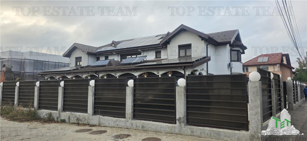 Excelenta prin experienta ! Noi nu vindem francize, noi vindem proprietati... si o facem pe 5 continente ! Va propunem spre vanzare o vila exclusivista de 425mp cu terasa acoperita de 80m si compusa din 10 camere care sunt formate din 2 livinguri cu spatii de dinning, 6 dormitoare la etaj, 2 camere amenajate ca birouri la parter, precum si 2 bucatarii complet utilate si separate, 1 spalatorie/uscatorie de 26.5mp si o curte proprie de 970mp. Curtea si exteriorul sunt complet renovate in 2024 cu sistem de drenaj (burlane impamantenite). Curtea dispune de spatiu verde, foisor, semineu si de zone de parcare cu 2 porti de acces culisante actionate electric cu telecomanda. Locuinta este deservita de un drum de servitute, bransata la reteaua de gaz ( contor montat), curent electric, centrala proprie, purificator de apa, cate 2 panouri fotovoltaice de 8.2KW cu baterii de 5KW, panouri solare (eficienta energetica ridicata), fosa septica si se afla intr-o zona foarte linistita, ferita de praf si traficul urban. Vila dispune de un garaj acoperit cu o suprafata de 26.8mp si de o camera tehnica la subsol. Pretul de vanzare al proprietatii este 628.000 EURO. Se accepta credit ipotecar. Oferim consultanta gratuita si facilitarea obtinerii rapide a creditului ipotecar, cu dobanda foarte buna si rate fixe pentru 5 ani, fara costuri ascunse ! Asiguram consultanta juridica si financiara permanent! Tranzactioneaza cu noi si primul transport de mobila este gratuit, in Bucuresti si Ilfov ! Beneficiaza de serviciile TET: Oferte internationale in peste 15 tari (Cipru, Grecia, Muntenegru, Regatul Unit, Dubai...) Servicii de asigurari Evaluari Autorizate ANEVAR Servicii Property Management De peste 15 ani alaturi de tine! ID intern: TET0021430.