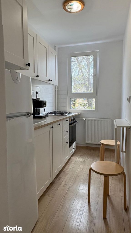 spre inchiriere pe termen lung o garsoniera complet decomandata, cu o suprafata de 34 mp, amenajata modern si intretinuta impecabil, situata in Sector 4 – Berceni, Str. Rezonantei nr. 1, chiar vizavi de Spitalul Marie Curie. Bonus: Loc de parcare chiar in fata scarii! Garsoniera este gata de utilizare și include facilități precum mobilier (multiple spatii de depozitare, canapea extensibila si spatiu dedicat, perfect pentru work from home), mașină de spălat rufe, masina de spalat vase, plita, cuptor, frigider și TV. De asemenea, dispune de aer condiționat, boiler și internet de mare viteza. Locuința are o bucătărie separată, ceea ce oferă confort și funcționalitate. Spațiul este potrivit pentru o persoană sau cuplu si ofera o compartimentare eficienta, luminozitate si liniste, fiind ideala pentru un stil de viata echilibrat. Locatie: Vizavi de Spitalul Marie Curie Acces rapid catre Piata Sudului / metrou Zona linistita si inverzita Magazine, farmacii si transport in apropiere Proximitate parcuri, inclusiv Oraselul Copiilor Este o locație ideală pentru medici, rezidenti sau persoane active, care apreciaza proximitatea, linistea si confortul unui spatiu bine organizat si care doresc să locuiască într-un cartier liniștit, dar bine conectat. Conditii: Contract minim: 1 an Plata: 1 luna chirie + 1 luna garantie Utilitatile se platesc separat Proprietatea se prezinta exact ca in fotografii