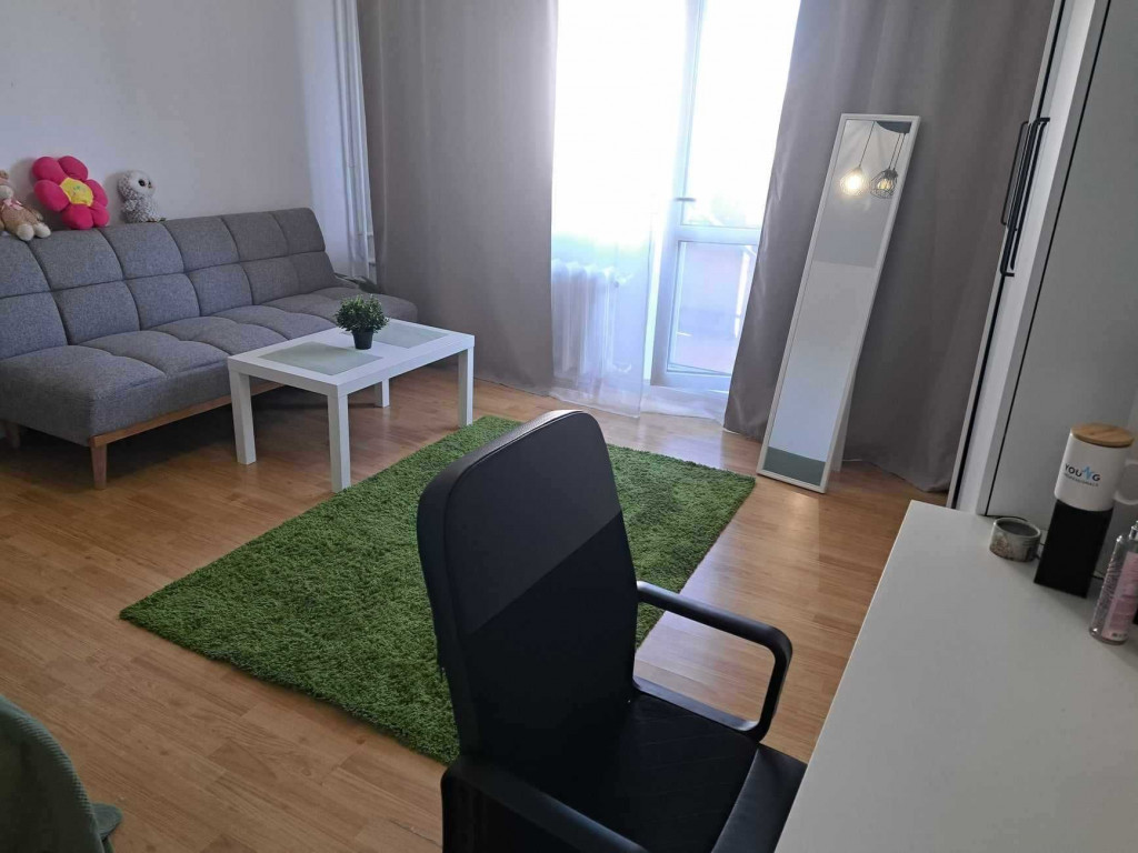 garsoniera spatioasa, cu balcon la 6 minute de mers de jos pana la metroul Constantin Brancoveanu. Pentru 2 luni initial.