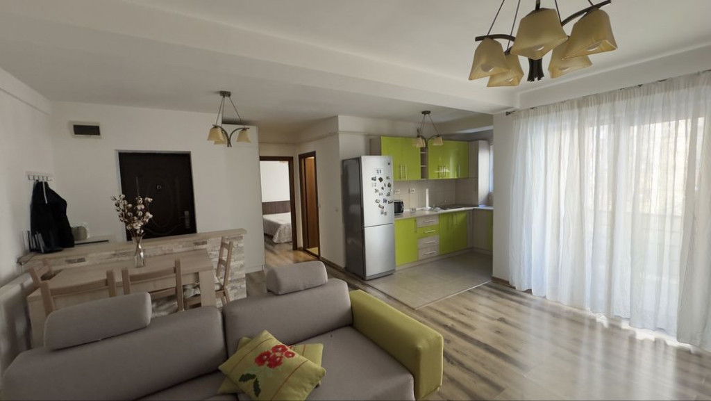 Apartament cu 2 camere de închiriat, cu o suprafață utilă de 50,1 mp, compus din living generos (25,36 mp), bucătărie open space (5,67 mp), hol (1,65 mp), baie (5,4 mp) și dormitor (12,02 mp). Proprietatea dispune de două balcoane (3,51 mp și 2,33 mp), rezultând o suprafață utilă totală de 55,94 mp. Este situat la etajul 1 al unui imobil P+2+M, pe Strada Împăratul Traian nr. 42, Sector 4, București, într-o zonă bine conectată la transport și facilități urbane. Stațiile STB se află la 3–4 minute de mers pe jos, iar stația de metrou Constantin Brâncoveanu la aproximativ 7–8 minute, cu acces rapid către centrul orașului. În apropiere se găsesc școli, grădinițe, magazine, supermarketuri, farmacii, precum și zona Piața Sudului și Sun Plaza. Apartamentul se închiriază complet mobilat și utilat (mașină de spălat, frigider, cuptor cu microunde, aragaz, cuptor, hotă, 2 televizoare). Este curat, recent igienizat și disponibil pentru mutare imediată. Beneficiază de loc de parcare stradal și acces la o curte comună amenajată cu foișor. Se închiriază pe termen lung, minim 1 an. La semnarea contractului se achită o lună de chirie în avans și o lună garanție.