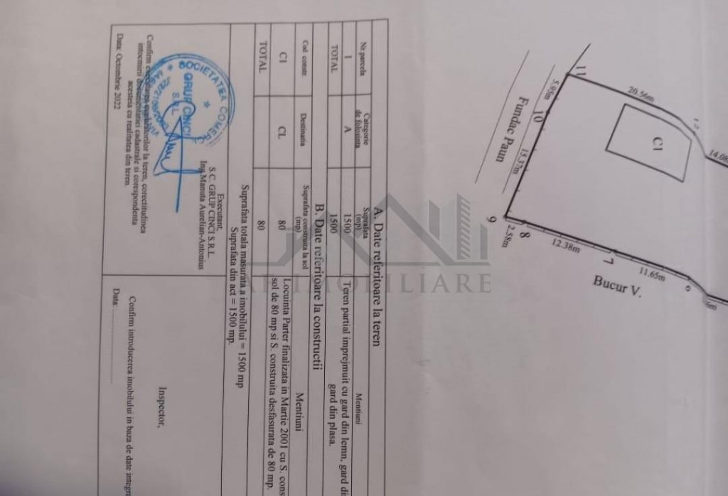 Pe acest teren se afla o casa pe parter, constructie veche din valatuci in suprafata de 80mp. locuibila, in conditi f.modeste.