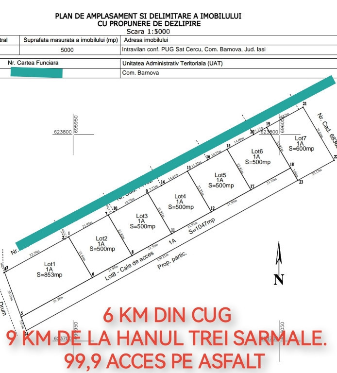 Relații suplimentare la 0754853636. Acte O.K. POT 30 %. CUT 0,6. Regim de înălțime P +1 +M. Suprafețe perfect plane. 650 mp intravilan sat Cercu comuna Bârnova județul Iași. Cotă de drum inclusă în preț. Preț începând de la 12500 euro lotul în funcție de parcelă și amplasament! 50 %avans și diferența în maxim 6 luni! Zonă superbă și în dezvoltare. 500 intravilan+cotă de drum 150 mp. PERFECT PLAN. Lot 1. 28000 euro. Lot 2. 15500 euro. Lot 3. 14950 euro. Lot 4. 14500 euro. Lot 5. 14000 euro. Lot 6. 12500 euro. Lot 7. 15000 euro. Numai construcții noi! Relații suplimentare la 07******36! https://maps.app.goo.gl/ysUt7GpRSGfQRnaS6 Locație Google maps reală! Acte O.K. Sat Cercu. Comuna Bârnova. Județul Iași. Balta Ciurea la 210 metri liniari de locație! Parcele de 500mp intravilan I +cotă de drum cca. 150 mp. Apă curentă și curent electric aproape! 6 km de la capăt CUG, Rond tramvai CUG. 9 km de la Hanul Trei Sarmale! 13 km din Piața Unirii! 99,9 % ACCES PE ASFALT. POT 30 %. CUT 0,6. P+1+M!