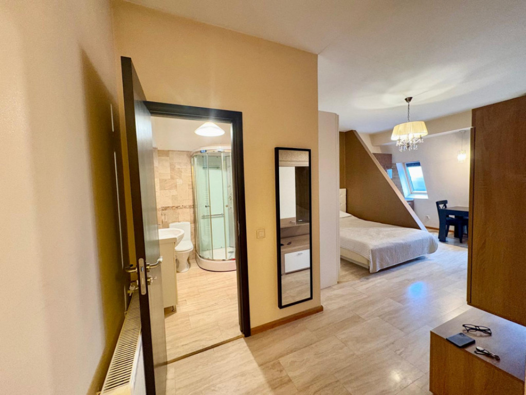 BUCURESTII NOI - BRANARUL, GARSONIERA COCHETA, 33 MP. Amplasata convenabil pe o strada linistita, la cateva minute de mers pe jos de statia de metrou, piata si parc. Garsoniera confortabil, situata la mansarda, potrivita pentru o persoana tanara. Imobil de 3 etaje, curat si bine intretinut, cu access securizat. Interior frumos amenajat, curat si functional, cu centrala proprie si multiple spatii de depozitare. Condiții de închiriere: • Avans: 1 lună chirie + 1 luna garanție, contract pe minim 12 luni • Comision 50% pentru chirias, nu se aplica TVA • Exclus fumatul în apartament, exista balcon. Id intern: P383