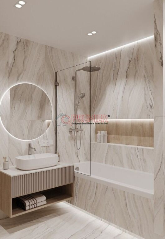 Poze tip randare cu titlul de prezentare. Viitorul proprietar beneficiaza de privilegiul de a alege din paletarul oferit de catre dezvoltator de finisaje Premium.