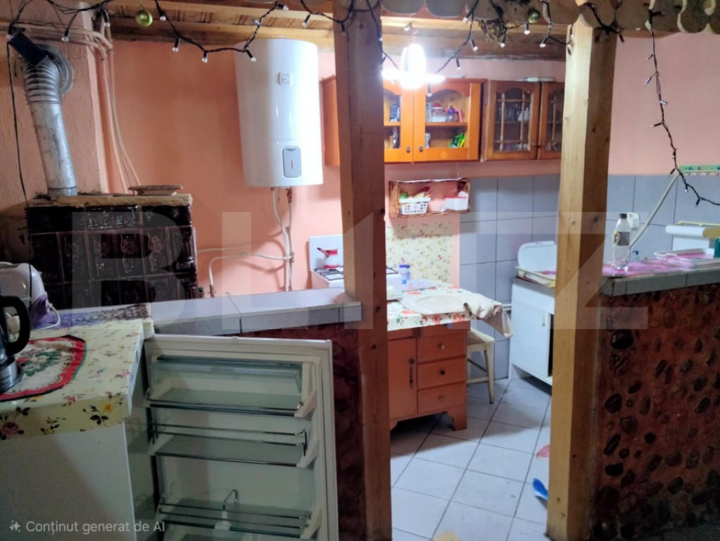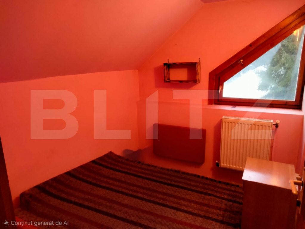 Blitz vǎ propune la vânzare cabană situată în zona Dealul Bajului, într-un cadru natural retras, la marginea pădurii de brazi, ideală pentru relaxare și escapade de weekend. Imobilul dispune la parter de living spațios cu bucătărie open-space și o baie, iar la etaj de 5 dormitoare (dimensiuni medii/mici) și o baie de serviciu. Teren aferent de aproximativ 250 mp, curte în jurul cabanei, WC exterior. Acces prin drum de servitute comun cu vecinii. Utilități: apă prin cădere, încălzire cu centrală pe lemne și calorifere si boiler electric. Proprietate potrivită pentru casă de vacanță sau investiție în regim turistic, într-o zonă liniștită, cu aer curat și priveliște deosebită. Cod ofertă / ID BLITZ: P163745 Id intern: P163745