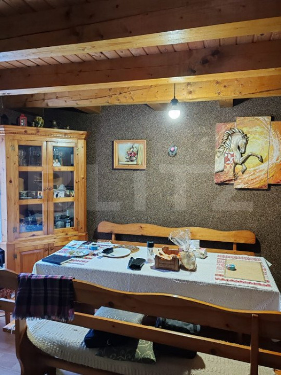 Blit zpropune spre vanzare o proprietate unică, situată într-o zonă de natură, potrivită atât pentru uz personal, cât și pentru afaceri. Detalii generale: Locație: La intersecția drumului principal cu intrarea spre Câmpu Cetății, într-o zonă liniștită. Compartimentarea locatiei este urmatoarea: Parter: Living, bucătărie, baie. Etaj: 3 dormitoare cu balcon și o baie. Spațiu suplimentar: Cameră separată cu ciubăr, saună pe lemne și baie separată (WC și cabină de duș). Garaj: Pentru două mașini + atelier. Încălzire: Centrală termică proprie și sobă teracotă pe lemne. Mobilier și utilități: Se vinde mobilată și utilată așa cum apare în poze, dar necesită lucrări de renovare Teren și facilități: Teren: 1,7 ha, cu diverse construcții anexe, inclusiv beci. Lac: Pentru pescuit, cu pește crescut de proprietar. Lacul este înconjurat cu pietre de râu. Apă: 3 izvoare care asigură apă în casă prin hidrofor. Există un pârâu care trece prin proprietate și alimentează lacul. Fosa septică. Afaceri: Proprietatea este potrivită pentru un business de tip cazare (cabana + camping) sau pentru parcelare. Este o proprietate care combină confortul unei locuințe de vacanță cu potențialul de a deveni o afacere în turism sau o oportunitate de dezvoltare imobiliară. Cod ofertă / ID BLITZ: P138467 Id intern: P138467