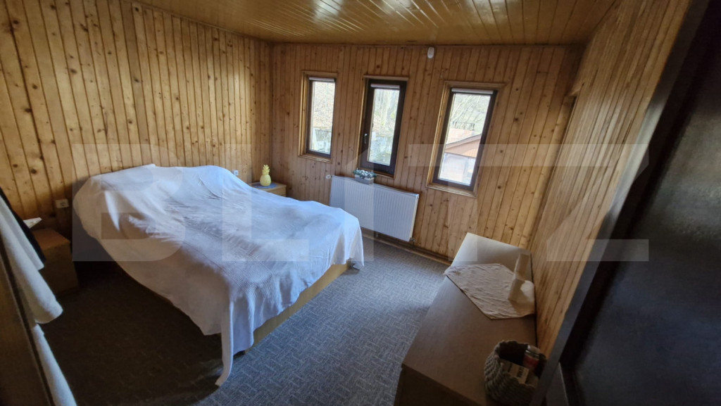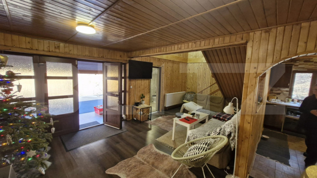 Blitz va propune spre vanzare, o cabană primitoare, perfectă pentru relaxare sau investiție în turism, amplasată într-o zonă deosebit de frumoasă, unde natura și intimitatea se îmbină armonios. Proprietatea dispune de 5 camere spațioase, luminoase și confortabile, ideale pentru familie și prieteni, precum și de 1 baie funcțională. În exterior, te bucuri de facilități care transformă fiecare zi într-o vacanță: Ciubăr pentru momente de relaxare în aer liber Foișor închis separat, amplasat lângă cabană – perfect pentru mese festive sau seri liniștite indiferent de vreme Baltă de pești populată, ideală pentru pescuit recreativ și atmosferă autentică Piscină pentru zilele călduroase de vară Terasă cu zonă de relaxare, unde te poți bucura de aer curat și peisaje încântătoare Această proprietate este alegerea ideală pentru cei care își doresc o oază de liniște, departe de agitația orașului, dar cu toate facilitățile necesare pentru confort și relaxare. Pentru mai multe detalii sau programarea unei vizionări, nu ezitați să ne contactați! Cod ofertă / ID BLITZ: P165929 Id intern: P165929