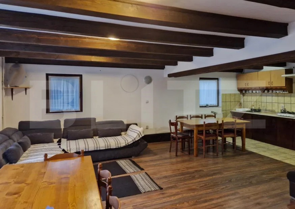 BLITZ oferă spre vânzare o cabană situată în Dealu Mare, Comuna Râșca în proximitatea pârtiei, la distanță de aproximativ 35 km de Cluj-Napoca, foarte aproape de malul râului Someșul Cald. Proprietatea dispune de o suprafață utilă de 240 mp, amplasată pe un teren de 404 mp, regim de înălțime P+E+M. Compartimentare: Parter: living open space cu bucătărie, baie, cămară; Etaj: 3 camere cu baie proprie, un spațiu de recreere, un spațiu de depozitare; Mansardă: 2 camere cu baie proprie. Construcția este realizată din cărămidă și lemn, cu izolație termică. Casa se vinde mobilată și utilată complet, cu instalații electrice și sanitare, încălzire prin centrală cu peleți cu consum redus, apa curentă din făntănă, canalizare cu fosă septică, boiler capacitate 120l, șemineu tip radiator, mașină de spălat rufe, cuptor cu microunde, acces TV și internet, parchet înlocuit în 2025. Exterior: terasă de 30 mp, magazie lemne, spațiu pentru pregătire ceaun și grătar, 5 locuri de parcare, împrejmuire exterioară. Poate fi considerată o oportunitate de achiziție pentru investiție într-o zonă căutată în orice anotimp pentru inchiriere. Vă așteptăm cu drag să ne contactați pentru mai multe detalii și să organizăm o vizionare. Cod ofertă / ID BLITZ: P162414 Id intern: P162414