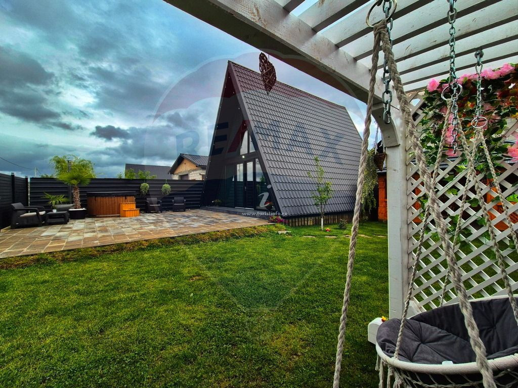 RE/MAX Terra are plăcerea de a va prezenta o cabana A-frame de vânzare – Ocna Șugatag, Maramureșul istoric. În inima zonei cu renume pentru băile sărate, această spectaculoasă cabană tip A-frame, cu perete frontal din sticlă, oferă priveliști superbe și un aer modern în mijlocul naturii. Parterul cu living spațios, zonă de luat masa și bucătărie complet utilată îmbină confortul cu eleganța. La etaj, două dormitoare noi-nouțe asigură odihnă deplină. Exteriorul este gândit pentru relaxare și socializare: ciubăr profesional cu sobă pe lemne și jacuzzi, foișor cu masă și bănci, grătar tip barbeque și balansoar pentru cei mici. Cabana a fost înregistrată pe platforme de închiriere, evaluată cu punctaj maxim de Ministerul Turismului și sa bucurat de o cerere constantă. Tariful actual: 1500 lei/weekend, capacitate 6-7 persoane. O oportunitate excelentă pentru investiție sau pentru propria ta oază de vacanță în Maramureșul istoric.
