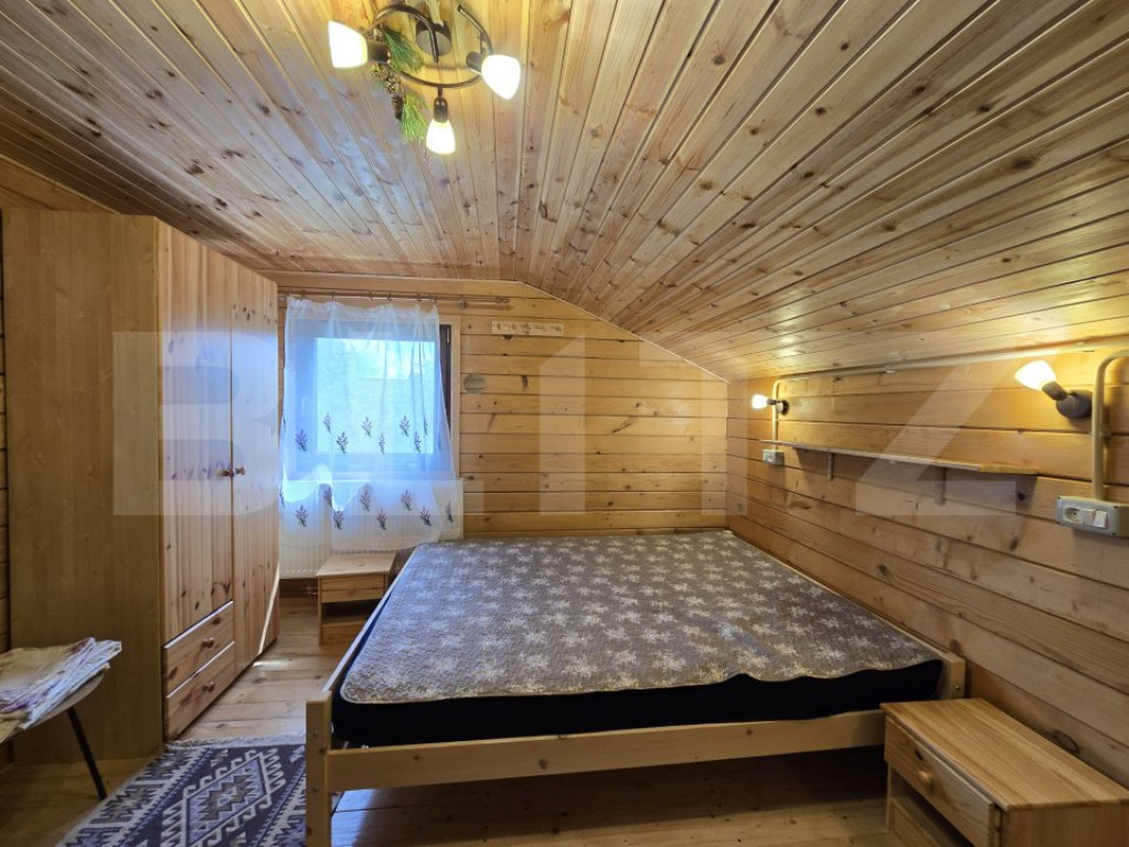 Cabană lemn cu 4 dormitoare, 120mp, teren intravilan de 125