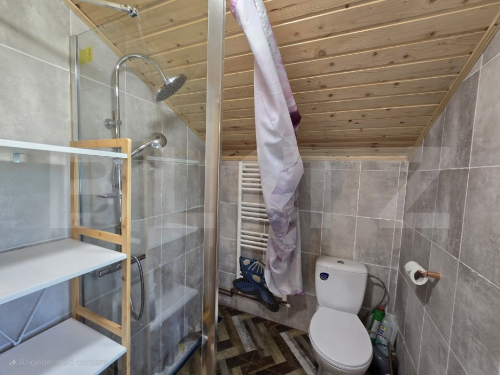 Blitz vă oferă spre vânzare casă de vacanță în Dealu Negru, Comuna Călățele, Judetul Cluj – Construită în 2022. Îți oferim oportunitatea de a deveni proprietar al unei case de vacanță, situată la doar o oră distanță de mers cu masina din Cluj-Napoca. Această proprietate este perfectă pentru cei care își doresc liniștea și frumusețea naturii. Detalii despre proprietate: Suprafață utilă: Suprafața totală a construcției este de 120mp, terasă de 30mp, suprafața utilă este de 90 mp, compusa din 4 dormitoare, două băi, living . Teren: 1251 mp intravilan amenajat complet cu iarbă, pomi fructiferi, filigorii Acces: Casa este retrasă de la drumul principal, accesul se face pe un drum privat Utilități: Apă din izvor, curent electric, fosă septică Încălzirea se realizează prin termoșemineu pe lemne, prin calorifere, la ambele etaje. Structura casei este din lemn uscat, iar confortul termic este asigurat de 10 cm izolație ignifugă. Casa se predă la cheie, complet mobilată si utilată. La exterior, lemnul este tratat si vopsit pentru a asigura o durată maximă de viață. Compartimentare: La parter: living cu o masă de 10 persoane, bucătărie dotată cu frigider nou, plită electrică, hotă, cuptor cu microunde, o baie și acces pe terasa de 40 mp cu mese din lemn masiv si loc de BBQ din cărămidă, un dormitor dublu. La etaj: 3 dormitoare, o baie cu dus Lacul Beliș este la 15 minute de mers cu masina, sau un hike de 10km. Aceasta este o oportunitate rară pentru a deține un refugiu perfect, ideal pentru vacanțe sau retrageri de weekend. Contactează-ne pentru detalii suplimentare și pentru a programa o vizionare! Cod ofertă / ID BLITZ: P146590 Id intern: P146590