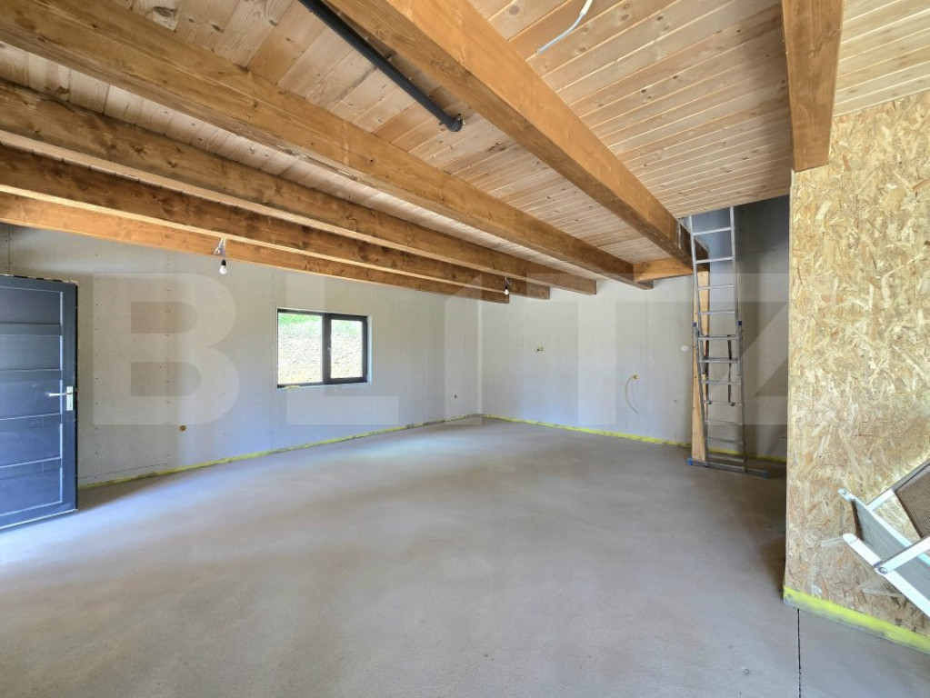 Blitz vă oferă spre vânzare casă de vacanță în Mărișel, Judetul Cluj – Construită în 2024! Îți oferim oportunitatea de a deveni proprietar al unei case de vacanță moderne, situată la doar 2 minute distanță de pârtia de schi. Această proprietate este perfectă pentru cei care își doresc liniștea și frumusețea naturii. Detalii despre proprietate: Suprafață utilă: 153 mp Teren: 500 mp, îndreptat, cu posibilitatea de a construi anexe (ciubăr, foișor sau saună). Acces: Casa este retrasă de la drumul principal, accesul se face ușor pe un drum de aproximativ 200 m. Utilități: Apă de la rețea, curent trifazic, fosă septică ecologică de mare capacitate. Confort și eficiență: Încălzire prin pardoseală atât la parter, cât și la etaj, cu posibilitate de racordare la centrală pe lemne sau pompă de aer. Structura casei este din lemn de grosime 20 cm, iar confortul termic este asigurat de 20 cm izolație (vată anticondens, folie de izolare). Interior semifinisat: Casa se predă la stadiul de semifinisat, oferind libertatea de a personaliza interiorul conform preferințelor tale. La exterior, lemnul este tratat pentru a asigura o durată maximă de viață. Compartimentare bine gândită: La parter: living generos de 80 mp cu bucătărie open-space, baie cu duș și cameră tehnică. Accesul pe terasă se face printr-o ușă mare de 5 m. La etaj: 4 dormitoare matrimoniale, 2 băi cu duș, iar podul este mansardabil, izolat cu 20 cm de spumă, având posibilitatea de extindere a numărului de dormitoare. Aceasta este o oportunitate rară pentru a deține un refugiu perfect, ideal pentru vacanțe sau retrageri de weekend. Contactează-ne pentru detalii suplimentare sau pentru a programa o vizionare! Cod ofertă / ID BLITZ: P138073 Id intern: P138073