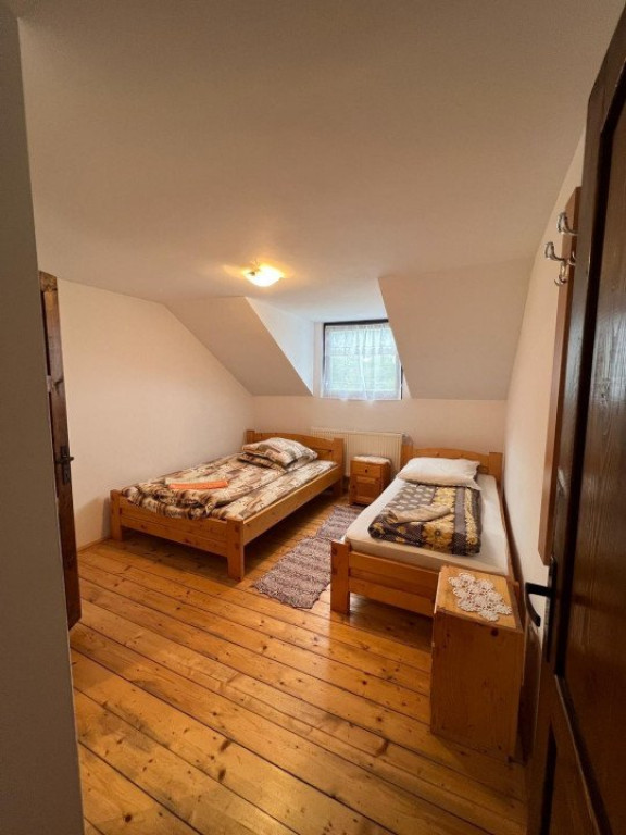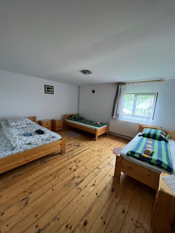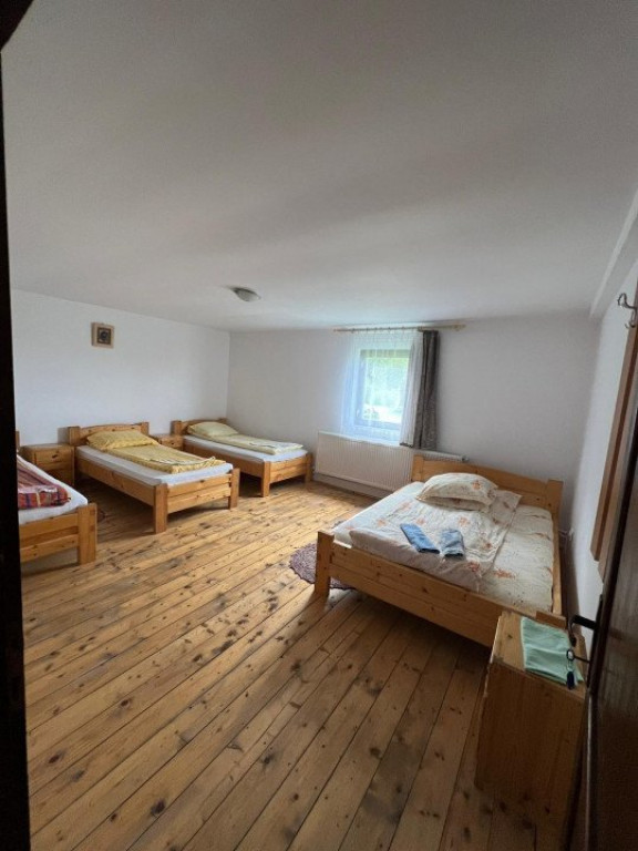 De vanzare cabana cu 9 camere. Aceasta se afla situata in localitatea Rachitele, este construita din lemn si compusa din: Demisol; camera tehnica, Parter; hol, living, bucatarie, 2 dormitoare, baie si o terasa de aprox 16 mp. Etaj; hol, 6 camere, 6 bai si terasa. Podul poate fi folosit ca spatiu de depozitare. Imobilul mai dispune si de un foisor cu suprafata de aproximativ 18 mp, iar accesul se face dintr-un drum public pietruit, distanta pana la drumul asfaltat fiind de aproximativ 4 km. Pentru mai multe detalii, nu ezitati sa ne contactati. Cod ofertă / ID BLITZ: P2916 Id intern: P2916