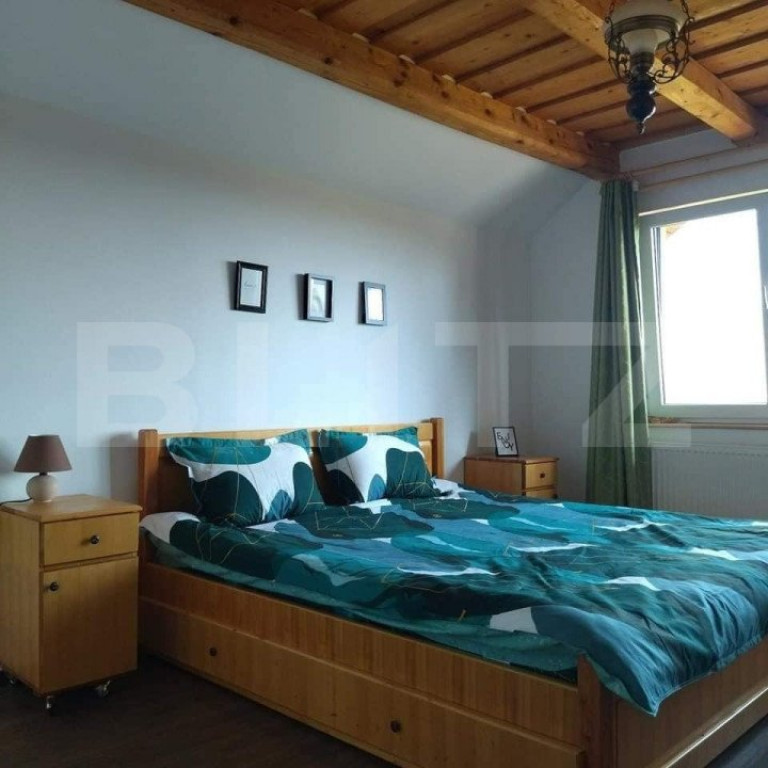 Cabana mobilată și utilată propusă spre vânzare de Blitz reprezintă o oportunitate excelentă pentru cei în căutarea unei locații deosebite în apropiere de Bistrița. În primul rând, cabana dispune de un living spațios și un spațiu dedicat servirii meselor, oferind un loc confortabil și prietenos pentru socializare și relaxare în compania celorlalți oaspeți. Aici, se poate petrece timp de calitate, fie că este vorba de discuții pline de căldură, jocuri sau simpla bucurie de a fi împreună. Bucătăria complet utilată este un alt aspect de luat în considerare. Aceasta oferă posibilitatea preparării și servirii unor mese delicioase și variate. Indiferent că este vorba de un mic dejun energizant înainte de o zi plină de aventuri sau de o cină relaxantă după o zi lungă de explorare, bucătăria este echipată pentru a satisface toate nevoile gastronomice ale oaspeților. Cele trei camere matrimoniale spațioase și confortabile cu băi proprii și balcoane reprezintă un alt beneficiu important al cabanei. Aceste camere oferă intimitate și confort, creând un spațiu personal și relaxant în care oaspeții se pot retrage după o zi plină de activități. Băile proprii cu duș sunt un plus în ceea ce privește comoditatea și intimitatea, iar balcoanele oferă o priveliște impresionantă asupra împrejurimilor naturale. Cabana dispune și de o cameră suplimentară de aproximativ 40 de metri pătrați, dotată cu 4 paturi etajate pentru 8 persoane și 3 paturi single. Această cameră reprezintă o opțiune excelentă pentru grupurile mai mari sau familiile care călătoresc împreună, oferind suficient spațiu pentru toți membrii să se odihnească în confort. Un alt beneficiu deosebit al cabanei este terasa sa, unde oaspeții se pot bucura de aerul proaspăt și de priveliștea spectaculoasă a împrejurimilor. Aceasta oferă un spațiu minunat pentru a lua masa în aer liber sau pentru a petrece timpul citind o carte sau savurând o băutură în liniște. Cabana dispune, de asemenea, de două foișoare. Unul dintre acestea are o panoramă deosebită, oferind un cadru pitoresc pentru relaxare și socializare în aer liber. Celălalt foișor adăpostește un ciubar cu apă sărată cu efecte terapeutice, oferind o experiență unică de relaxare și revitalizare pentru oaspeți. Încălzirea pe lemne cu centrală este o opțiune atrăgătoare pentru cei care doresc să se bucure de căldura și atmosfera primitoare a focului de lemn. Aceasta creează o ambianță confortabilă și plăcută în timpul serilor mai răcoroase. De asemenea, cabana dispune de o parcare spațioasă de 300 de metri pătrați, oferind suficient loc pentru oaspeți să-și parcheze mașinile în siguranță. Aceasta este o caracteristică importantă, mai ales pentru grupurile mari care călătoresc cu mai multe autovehicule. În plus, terenul aferent cabanei oferă o panoramă deosebită, permițând oaspeților să se bucure de frumusețea naturală a împrejurimilor în timpul șederii lor. Priveliștea spectaculoasă poate fi admirată de pe terasă sau de la fereastra camerei, oferind o atmosferă relaxantă și deconectantă. În concluzie, cabana mobilată și utilată oferită spre vânzare de Blitz în apropierea Bistriței reprezintă un refugiu ideal pentru cei care doresc să se bucure de confort, relaxare și priveliști deosebite. Fiecare aspect, de la camerele spațioase și bine utilate la terasa și facilitățile suplimentare, contribuie la crearea unei experiențe memorabile și pline de satisfacții pentru oaspeți. Cod ofertă / ID BLITZ: P14330 Id intern: P14330