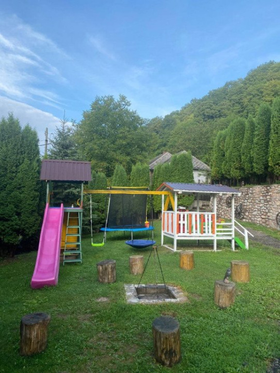 Blitz ofera spre vanzare o cabana pozitionata in Tarnita. Pozitionata in zona muntoasa, proprietatea este inconjurata de cabane de vacanta, zona fiind exclusiv pentru turism. Terenul delimitat si imprejmuit cu gard, tuya, flori ornamentale si arbusti. De asemenea sunt amenajate spatii de joaca pentru copii, terasa pentru barbebue, lac cu pesti. In curte este recent constuita o casuta din lemn pentru 4 persoane cu iesire in gradina. Cabana are urmatoarea compartimentare : Demisol - baie, bucatarie, living Parter - hol acces, open space pentru zona de relaxare , terasa. Mansarda - hol doua dormitoare. Terenul are urmatoarele anexe. 1. Spatiu de depozitare pentru lemne, unelte de gradinarit, iar pe acoperis sunt locuri de parcare acoperite. Constructia permite loc de amenajare camere care benefiaza de o priveliste spre lacul Tarnita. 2. Camera tehnica - camera centralei ( pe lemne ) 3. Terasa cu jacuzii. 4. Casuta de vacanta in curte formata dintr-o baie, un spatiu open space cu geamuri tip vitrina si un dormitor. 5. Terasa amenajata pentru zona de gratar, foisor. Cod ofertă / ID BLITZ: P2637 Id intern: P2637