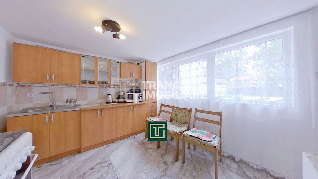 Tranc Imobiliare vă propune spre vânzare, în exclusivitate, o cabană situată în zona 3 Insule, Arad, într-un cadru natural deosebit, ideal pentru relaxare și timp petrecut în aer liber. Proprietatea este amplasată într-o locație unică, în mijlocul naturii, oferind liniște și intimitate. În exterior există facilități pentru relaxare, inclusiv un foișor amenajat, potrivit pentru grătar sau momente petrecute în aer liber. Cabana este spațioasă și practică, având o compartimentare eficientă. La parter se regăsește o zonă de living cu bucătărie deschisă și o masă generoasă, ideală pentru socializare. Proprietatea este bine izolată, ceea ce asigură menținerea temperaturii optime atât vara, cât și iarna, fără a fi necesar aer condiționat. Încălzirea este realizată printr-un șemineu pe peleți, nou, care încălzește eficient întreaga cabană. De asemenea, proprietatea dispune și de un șemineu pe lemne. Cabana are o suprafață construită de 98 mp și o suprafață utilă de 49 mp, fiind dispusă pe parter și etaj (P+1). Proprietatea beneficiază de un teren de 409 mp, concesionat de la Primărie, și loc de parcare în curte, oferind confort și siguranță. În ceea ce privește utilitățile, cabana dispune de apă prin hidrofor, iar sistemul de evacuare este realizat prin decontor, specific zonei 3 Insule, unde nu există canalizare clasică. Curentul este de la rețea. Prețul proprietății este de 79.900 euro. Pentru mai multe detalii și programarea unei vizionări: ???? +40 748 125 408