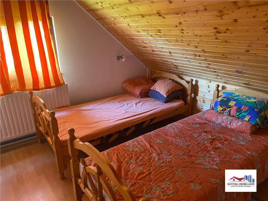 Cabana de Vanzare Zona Bistra Muresului - Deda Fayora Imobiliare va ofera spre vanzare o cabana complet mobilata si utilata, situata in zona Bistra Muresului - Deda, avand suprafata de 100 mp. Cabana este compusa din parter si mansarda, avand fundatie din beton si pereti exteriori si interiori din lemn. Parterul este format din: un living, o bucatarie, o debara, un hol, o magazie si o terasa spatioasa de 30 mp. La mansarda se afla: trei dormitoare si un hol generos. Imobilul este dotat cu centrala pe lemne care asigura incalzirea centrala, aer conditionat, apa, canal, electricitate. Cabana detine o curte in suprafata de 300 mp in care se afla un foisor cu gratar si este situata intr-o zona muntoasa foarte frumoasa si linistita cu multa verdeata. Pretul de vanzare al cabanei complet mobilata si utilata este de 75000 euro, negociabil. Contactandu-ne pe noi, daca sunteti clienti cumparatori beneficiati de servicii de consultanta gratuita si nu vi se va percepe comision. Suntem pregatiti si hotarati sa va oferim cele mai bune solutii in domeniul imobiliar, fie ca este vorba de cele mai competitive preturi, oferte personalizate conform cerintelor dvs. sau de asistenta pe intreaga durata a efectuarii tranzactiei. Cu responsabilitate, echipa Fayora Imobiliare face ca lucrurile sa se concretizeze, face ca oamenii sa isi indeplineasca visurile.