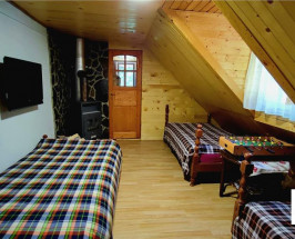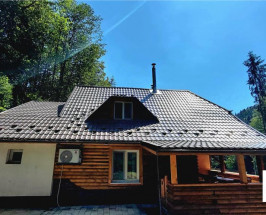 Cabana este construita din busteni / piatra si demisolul caramida, fundatia de 70 cm sapat pana la stanca si ancorat de stanca, izoltie premium (lana de aur), exteriorul semirotund impregnate in eclava industrial, tratat UV si antifoc.