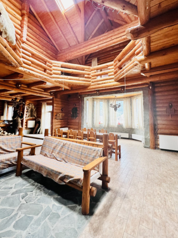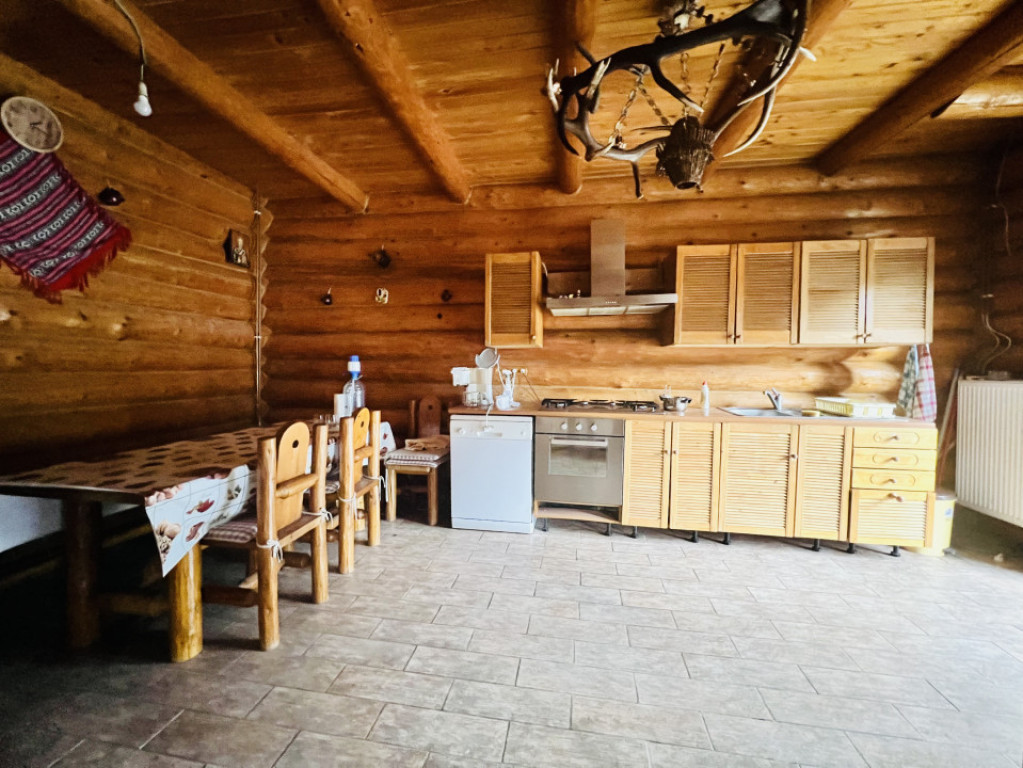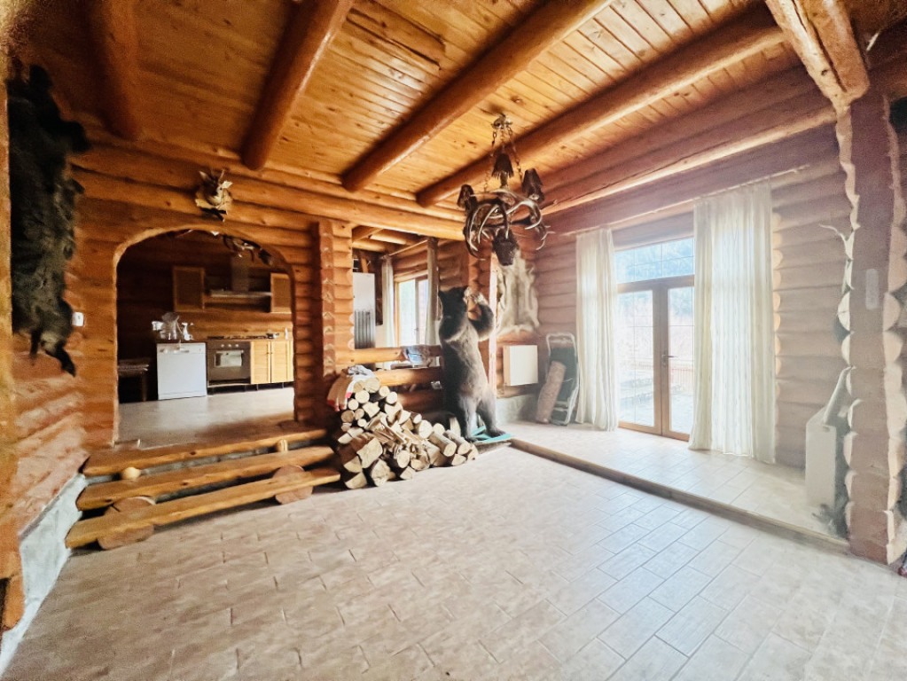 Va ofer spre vanzare aceasta superba proprietate situata in Busteni, pe strada Zamorei, in imediata apropiere a Castelului Cantacuzino, Raului Prahova cu vedere libera catre munti. Cabana a fost edificata in periada anilor 2010, pe un teren in suprafata de 630 mp. Este construita din piatra de rău și lemn, specific unei case la munte, cu camere spatioase, living de 100 mp, terasa de 75 mp, semineu, luminator,garaj, cramă, buncăr, balcoane etc. Datorita acestei structuri din lemn masiv, tratat ignifug, casa este una ecologica, permite transferul de aer din proprietate catre exterior si invers, este foarte calduroasa si iti ofera o energie si un vibe specific. Se vinde mobilata si utilata conform fotografii, inclusiv trofeele de vanatoare. Încălzirea este efectuată cu ajutorul centralei pe gaz sau centralelor electrice. Apă canal rețea. Proprietatea se adreseaza unui cumparator care isi doreste ceva diferit, satul de betoane si caramizi cu o priveliste panoramica ce te incarca cu energie. Id intern: P94941