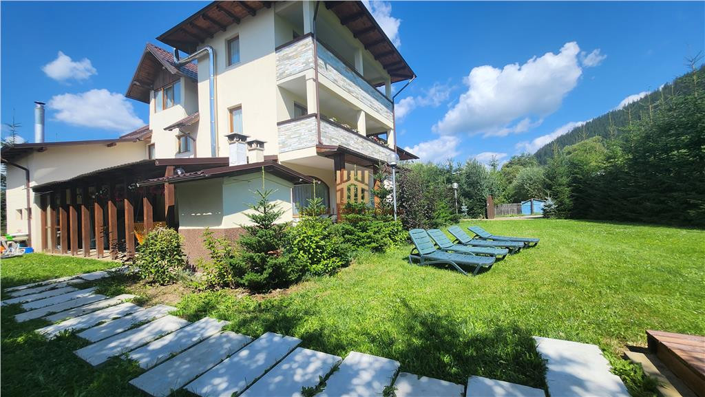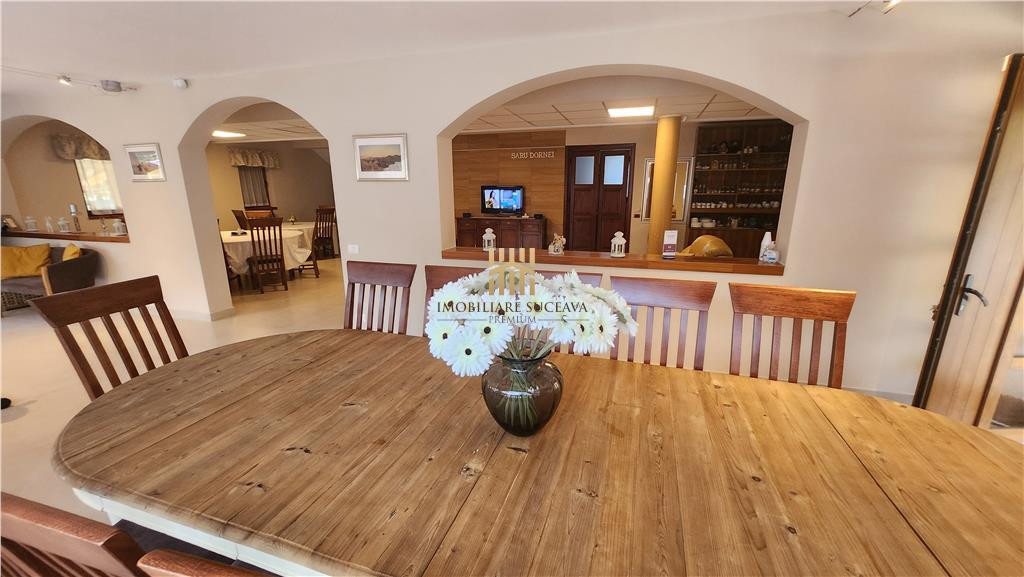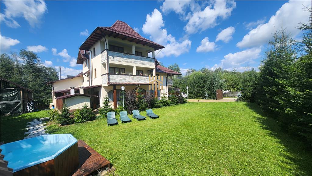 Casa de Vacanta in Bucovina! Saru Dornei! De vanzare! Locul tau si al prietenilor tai! Afacerea ta, casa ta, coltul tau de rai unde iti petreci vacantele si sarbatorile! Sau... toate astea la un loc! In zona superba, de munte! Curte intima protejata de brazi si tuia, cu ciubar/jacuzzi cu hidromasaj! Doua terase si curte cu gazon! Foisor cu cuptor si gratar! Bucatarie moderna, profesionala, complet utilata! Salon de 130 mp pentru petreceri, relaxare si distractie! 10 camere complet mobilate si utilate, cu bai proprii, dispuse pe 2 etaje! Drum asfaltat! Internet! Televiziune prin cablu! Constructie noua, 2019! Din BCA. Centrala termica pe lemn, cu gazeificare! Pret: 700000 euro! Comision quot;0quot; pentru cumparator! Daca trebuie credit bancar, va punem in legatura cu cel mai bun broker de credite! bull; Va acorda consultanta GRATUITA! bull; Finantare sigura si personalizata! Detalii: 0727817187 www.imobiliaresuceavapremium.ro ID intern: APH692.