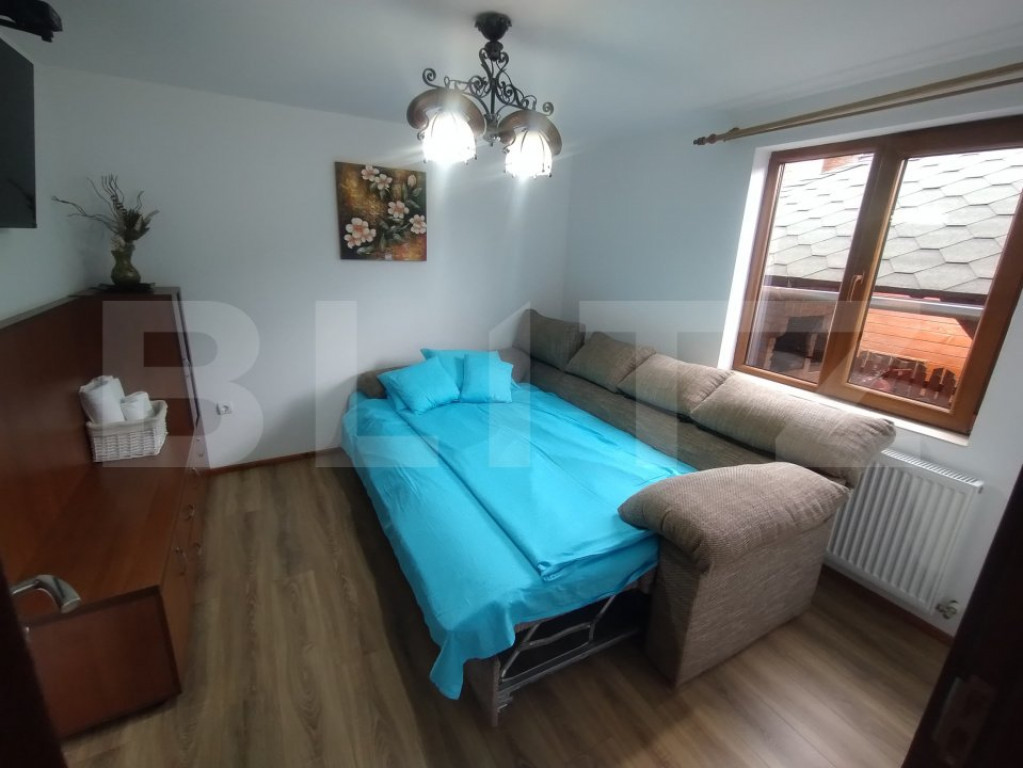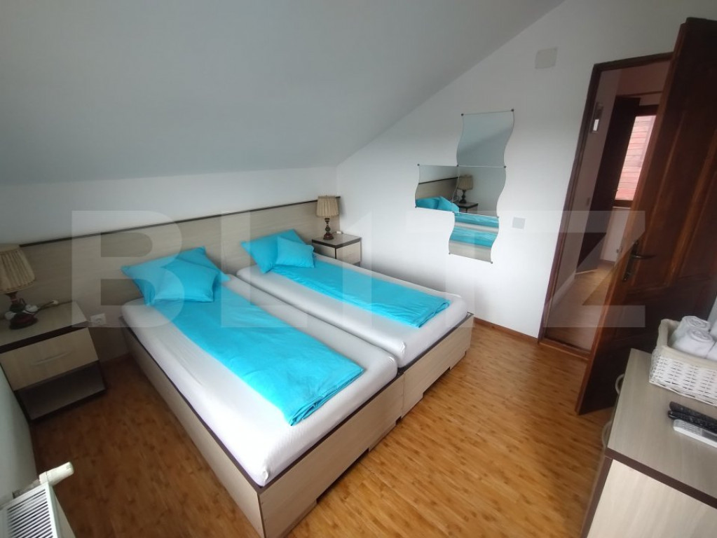 BLITZ ofera spre vânzare o cabană modernă, construită pe structură solidă, situată într-o zonă excelentă a stațiunii Băile Figa – una dintre cele mai dinamice destinații de vacanță din Transilvania. Ideală atât pentru uz personal (casă de vacanță), cât și pentru investiție în regim hotelier (Booking, Airbnb, etc.). Detalii proprietate: Suprafață utilă totală: 100 mp Teren aferent: 182 mp, cu spațiu verde amenajat Regim de înălțime: Parter + Etaj Compartimentare optimă pentru confort și funcționalitate: Parter: Living open-space cu zonă de relaxare Bucătărie complet utilată 1 baie complet echipată 1 dormitor Acces direct spre terasă acoperită de 16 mp, perfectă pentru petreceri și relaxare în aer liber LA Mansarda: 2 dormitoare generoase, mobilate modern 1 baie secundară 1 balcon cu priveliște către statiune Facilități exterioare: Terasă acoperită de 16 mp, dotată cu: Grătar zidit Ceaun tradițional Sobă rustică pentru gătit sau încălzit Spațiu verde în curte, ideal pentru relaxare sau amenajare zonă de joacă pentru copii Siguranță & dotări suplimentare: Sistem de alarmă instalat – controlabil la distanță Construcție solidă, bine întreținută, izolată termic Răcoroasă vara și călduroasă iarna – ideală pentru utilizare pe tot parcursul anului Toate utilitățile: gaz,apă, electricitate ,canalizare, TV Potrivită pentru: Locuință de vacanță pentru familie Investiție cu randament ridicat în turism – închiriere în regim hotelier Cabana este deja pregătită pentru a genera venit pasiv din închirieri – poate fi predată complet mobilată și echipată Localizare excelentă:La doar câteva minute de mers pe jos de baza de agrement Băile Figa (piscine, saune, salină, locuri de joacă, trasee outdoor) Acces rapid către orașul Beclean și infrastructura principală a județului Zonă liniștită, dar aproape de punctele de interes turistic Pentru mai multe informații, vizionare sau negociere preț, vă rugăm să ne contactați: Cod ofertă / ID BLITZ: P145471 Id intern: P145471