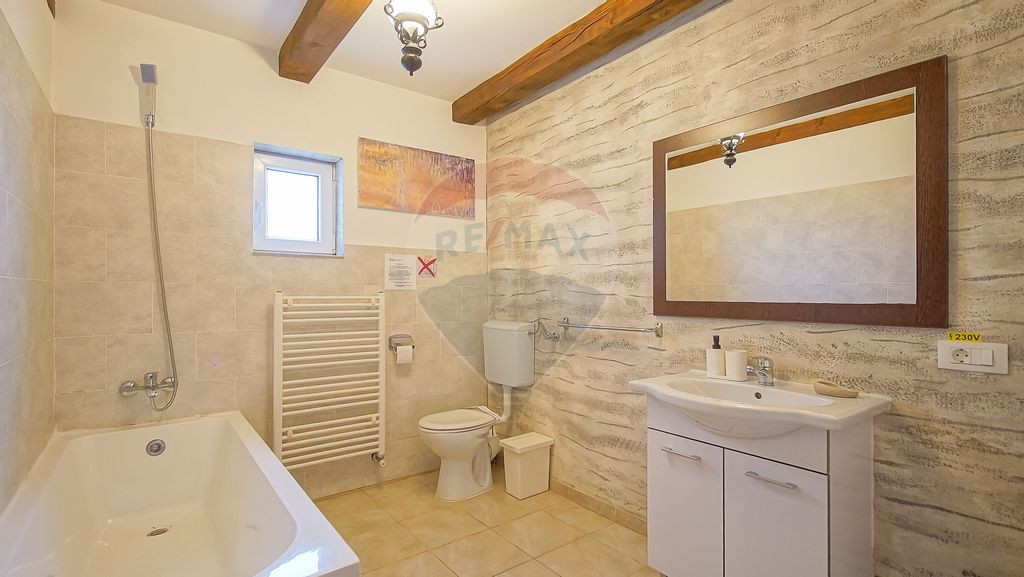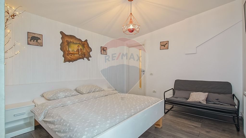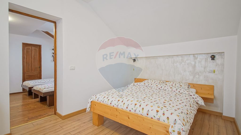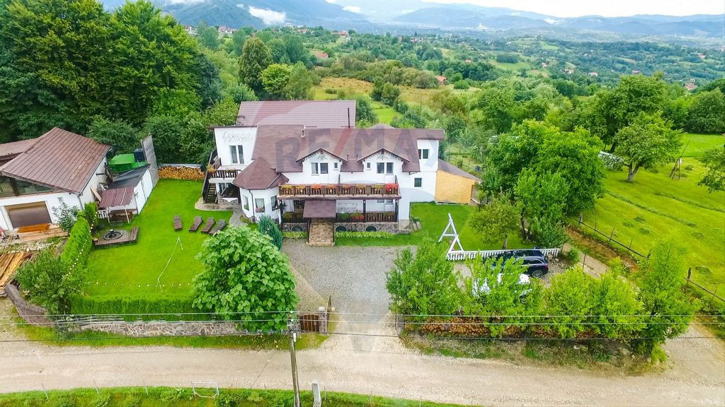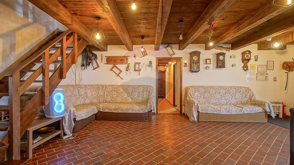Agenţia imobiliară Remax Evolution vă prezintă, spre vânzare, în sistem de reprezentare exclusivă şi cu comision 0% din partea cumpărătorului: Cabana La Flo este o vilă rustic-modernă de cazare turistică situată în satul Sohodol (comuna Bran), la poalele Munților Bucegi și Piatra Craiului, la aproximativ 4 km de renumitul Castel Bran. Locația oferă un cadru natural spectaculos, aer de munte curat și priveliști impresionante, perfect pentru relaxare, aventuri și evadări în natură. Cu un teren generos de 888 de metri pătrați, această proprietate îți oferă spațiu pentru a-ți desfășura visurile și ideile. Cu 8 camere primitor amenajate și un apartament elegant, fiecare cu baia proprie, oferi oaspeților tăi confort și intimitate. Atât parterul cât și mansarda sunt gândite pentru a încânta simțurile și pentru a oferi priveliști uluitoare către frumusețea naturală înconjurătoare. Punct gastronomic local - La Cabana La Flo găsești opțiuni de mâncare tradițională românească, preparată cu ingrediente locale proaspete, conform specificului zonei Bran-Bucegi. Pe lângă mesele tradiționale, poți savura și grătare în aer liber sau pregătirea unor preparate la ceaun, într-o atmosferă relaxată alături de familie sau prieteni. Pentru cei în căutare de adrenalină, Cabana La Flo oferă excursii cu ATV-uri pe teren montan. Centru de experiență montană În cadrul cabanei există multiple facilități ce îți permit să experimentezi viața la munte: spații de relaxare și foișoare pentru socializare zone de grătar și terase panoramice pentru recreere posibilități de închiriere legate de sport și explorare (biciclete, echipament etc.) Cabana La Flo pune la dispoziție facilități de wellness pentru relaxare: jacuzzi / zonă de hidromasaj – folosit pentru relaxare în natură. La proprietate se ajunge din DN 73 în aprox. 10 min pe strada Muchia Hotarului 55B. Terenul este de 888 mp, front de 37 m. Vila este construită în 2012. Amprenta la sol este de 140 mp, regim de construcţie P+M. Vila are o centrală nouă pe lemne de 42 Kw din 2025, cu 2 rezervoare de 250 l şi 150 l. Construcţia este realizată cu fundaţie de beton, planşeele din grinzi de lemn peste care este turnată şapă cu armătură, izolaţia este din polistiren grafitat. Vila este însorită, având orientarea în principal spre sud şi est. Proprietatea este amplasată într-o locație privilegiată, la 3,8 km de DN73, la 4,6 km de Castelul Bran, la 13 km de autostrada A3. În zonă mai sunt Cetatea Râşnov, Dyno Park, Magic Park, Alpine Coaster Cheile Grădiştei. De asemenea, se află în proximitatea Aeroportului Internațional Ghimbav, asigurând un acces rapid și comod, cât şi la aproximativ 43 de minute distanță cu mașina de Braşov. Clasa energetica: A Consum anual specific de energie: 61,57 kWh/m2an Indice de emisii echivalent CO2: 19,66 kgCO2/m2an Consum anual specific de energie din resurse regenerabile: 0 Kwh/m2an Vă mulţumim şi vă stăm la dispoziţie cu detalii suplimentare despre acest imobil.