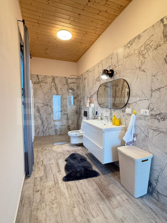 Dacă îți dorești liniște adevărată, aer curat și o priveliște care îți taie respirația, această cabană este exact refugiul pe care îl cauți. Amplasată într-o zonă verde, retrasă și extrem de liniștită, proprietatea oferă un cadru natural deosebit, cu multă vegetație matură și un pârâu pe teren ce poate fi amenajat pentru un colț spectaculos de relaxare. ???? Detalii proprietate * Suprafață utilă: 123 mp * Suprafață construită la sol: 156 mp * Teren generos: 2.200 mp * Construcție din BCA * Izolație dublă: vată + polistiren * Geamuri cu 3 foi de sticlă (eficiență termică ridicată) * Finisaje premium: gresie de calitate superioară + parchet în dormitoare * Se vinde complet mobilată ???? Compartimentare * Living luminos, cu șemineu funcțional * 2 dormitoare * 1 baie * Bucătărie complet utilată * Posibilitate de mansardare – se pot amenaja încă 2 dormitoare + baie * Ciubăr amenajat + jacuzzi Casa beneficiază de lumină naturală din abundență, datorită orientării estice și a geamurilor atent poziționate. ???? Confort & utilități * Încălzire în pardoseală (living și baie) * Calorifere în dormitoare * Gaz * Apă din bazin amenajat de primărie * Fosă septică * Conexiuni trase pentru camere de supraveghere * Garaj cu deschidere prin telecomandă ???? Avantaje majore ✔ Zonă extrem de liniștită ✔ Natură autentică, verdeață matură ✔ Pârâu pe proprietate ✔ Acte la zi, pregătită pentru vânzare ✔ Ideală pentru locuință permanentă, casă de vacanță sau investiție în regim turistic Această proprietate îmbină perfect confortul modern cu farmecul autentic al muntelui. Un loc unde diminețile încep cu aer curat și sunet de apă curgătoare. Pentru mai multe detalii sau programarea unei vizionări, vă stăm la dispoziție. ???? Cod ofertă / ID BLITZ: P164169 Id intern: P164169