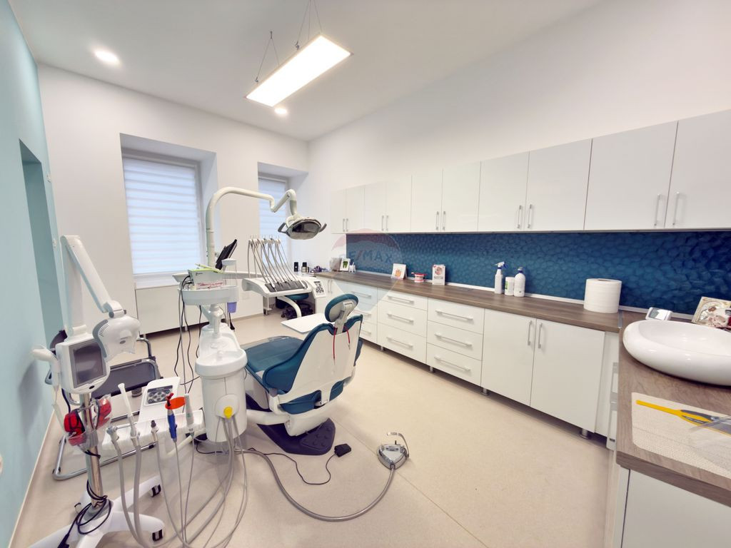 RE/MAX Dynamic vă propune spre închiriere, în exclusivitate, un spațiu cu destinația de cabinet stomatologic, cu intrare de pe bulevardul Revoluției și de pe strada Episcopiei, Arad. Proprietatea, semidecomandată, are următoarele caracteristici: • Etaj: parter • Suprafață: 80 mp construiți (conform CF) / 42 mp utili (conform releveu) • Utilități: curent electric, gaz, apă și canalizare • Compartimentare: 2 camere (sală de așteptare și spațiu de lucru), zonă de depozitare și aparatură, două băi (baie cu duș pentru personal și baie pentru pacienți) • Încălzire: centrală termică proprie, încălzire prin pardoseală • Prima închiriere • Parcare: posibilitatea de parcare în curtea interioară • Garanție: se percepe o garanție echivalentă cu prețul unei luni de chirie • Contract: se încheie contract de închiriere pe o perioadă minimă de 12 luni Spațiul se închiriază mobilat și utilat, conform fotografiilor, și este pregătit pentru a începe activitatea imediat. Dotări și specificații: aparatura pentru desfășurarea activității este de la firma „Runyes”, centrală proprie în condensare „Ariston”, sistem de alarmă, grupuri sanitare mobilate și utilate, televizor „Philips” în sala de așteptare, aparat de aer condiționat, tâmplărie PVC etc. Pentru mai multe detalii, vă stau la dispoziție.