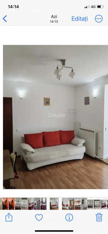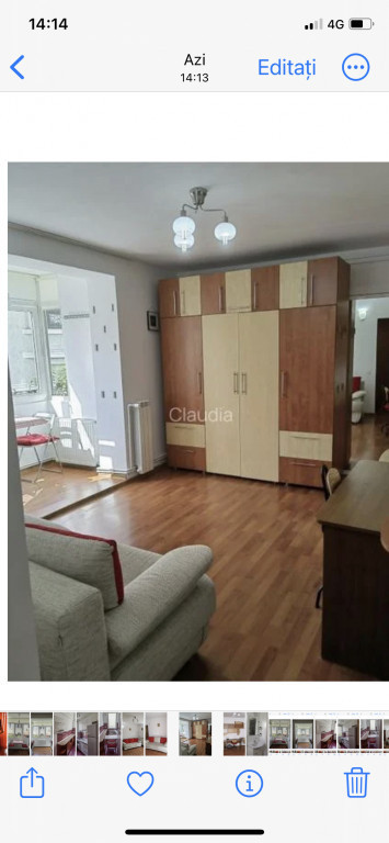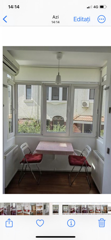 Vă propun spre închiriere o garsonieră situată chiar în inima Bucureștiului, în Sectorul 2, foarte aproape de Piața Hala Traian, magazinul Mega Image, Ceainăria Green Tea, Restaurantul PengYou, magazinul Someșul, 3 Farmacii, bancomat, laborator de analize medicale Bioclinica, Fabrica de mâncare, 3 stații de tramvai și mai multe stații de autobuz. Punctele de interes din apropierea garsonierei includ stațiile de metrou Unirii, Universitate și Piața Muncii, Teatrul Național București. Centrul vechi, unde se află o gamă largă de restaurante, magazine de antichități și localuri de noapte, este la 10 minute de mers pe jos de proprietate. Garsoniera se află într-o clădire în formă de U construită în anul 1958 ce are curte interioară, scară de bloc curată, vecini civilizați, disponibilă la etajul 1 din 3 cu o suprafață utilă de 25,4 mp. Garsoniera este mobilată și utilată, este liberă începând cu 1 ianuarie 2026 și se predă curată. Închirierea se realizează în baza unui contract. Pentru mai multe detalii vă rog să mă contactați telefonic. Caracteristici Zona: Centrală Suprafața utilă: 25,4 mp Suprafața totală: 29,4 mp Camere: 1 Străzi: Asfaltate Băi: 1 Etaj: 1 din 3 An construcție: 1958 Destinație: Locuință, Locuință/Birou Stadiu: Finalizat Mobilat: Modern, Stare bună Locuri Parcare: La stradă, domeniu public Confort: 1 sporit Balcoane: 1 Alte informații Acces internet: Fibra optica, Wireless Aer condiționat: Da Balcoane: Termopan Bucătărie: Da, Mobilată, Utilată Calorifere: Da Dotări: Multifuncțional Candy (aragaz, cuptor electric și mașină de spălat vase), Hotă, Frigider, Mașină de spălat, Aer Condiționat Ferestre: PVC Geam baie: Da Încălzire: Centrală termică de apartament Vaillant Interfon: Da Lift: Nu Mobilat: Stare bună, Modern Pereți: Faianță, Lavabil Podele: Parchet, Gresie Servicii: Administrare Tip Bloc: Rezidențial Uși intrare: Metal Uși: Lemn Utilități: Curent, Gaz, Canalizare, Apă, CATV, Internet, Vecinătăți Spații: Tramvai, Autobuz, Metrou, Piață, Zona comercială, Mega Image, Bioclinica, Ceainărie, Cinema, Benzinărie, Hotel, Parc, Restaurant/pub, Universitate, Liceu, Școală, Grădiniță