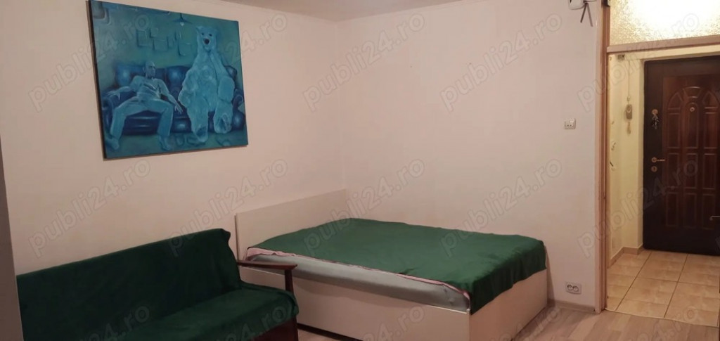 Garsoniera spatioasa, 32 mp, cu balcon mare, vis a vis Auchan Vitan, et 2 10, bloc 1980, utilata si mobilata complet, aer conditionat, masina spalat, apa si caldura contorizate, calduroasa, izolata pe interior, internet, cablu, interfon. In apropiere, statie STB (in fata blocului), metrou 15 minute, hypermarket, banca, farmacie, piata.b Chiria 300 euro + 300 euro garantie.