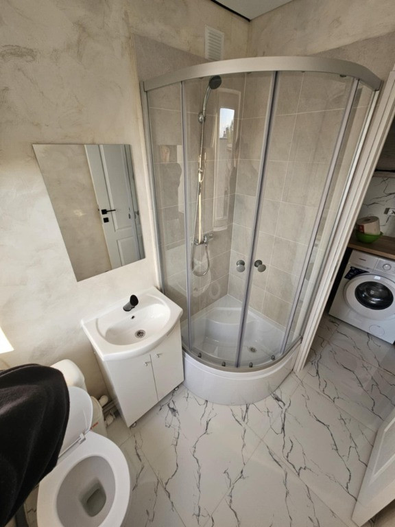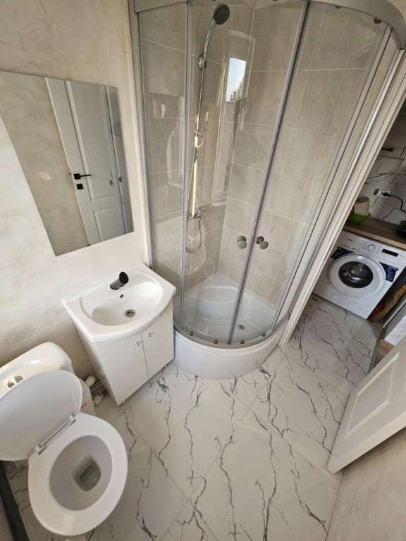 -baie proprie(cu geam),dotată cu duș,mașina de spălat,boiler electric;