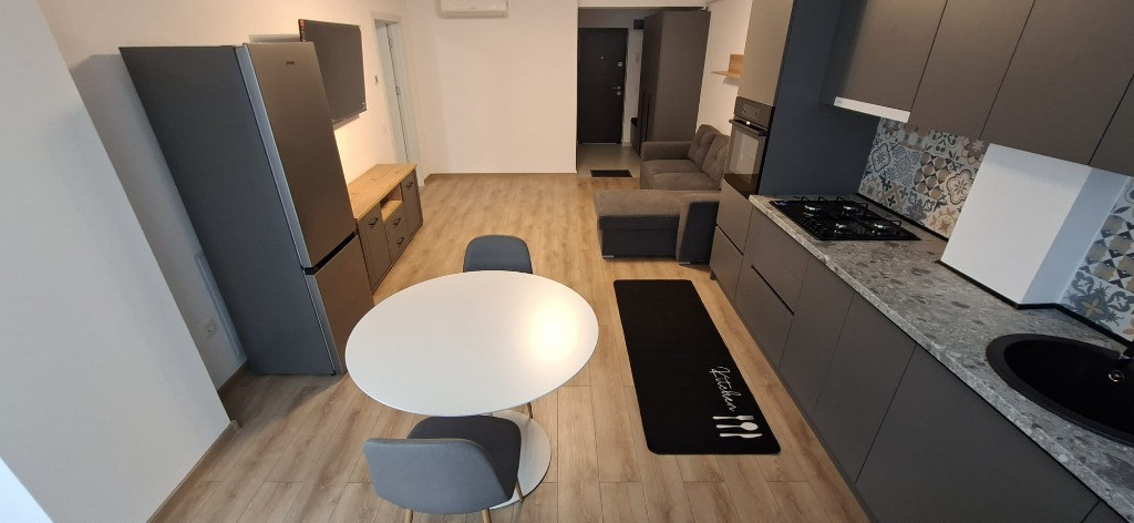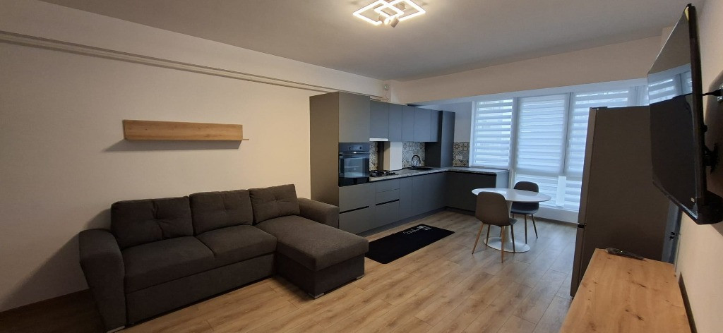 Agentia Contur Imobiliare Bacau ofera spre inchiriere un apartament modern si spatios cu 2 camere decomandat, situat la etajul 1/ 8 intr-un bloc finalizat in 2025 in cartierul Fiald (zona de nord a orasului). Imobilul este la prima inchiriere iar mobila si electrocasnicele sunt noi. Compartimentarea inteligenta si incalzirea prin pardoseala ofera confortul ideal atat pentru o singura persoana cat si pentru un cuplu. In parcarea subterana apartamentul beneficiaza de loc propriu de parcare. Blocul este deservit de doua lifturi. Dotari: - usa metalica - centrala termica Ariston cu incalzire prin pardoseala - tamplarie PVC - sistem smart de control al temperaturii pentru fiecare camera - aer conditionat - baie prevazuta cu cada, bideu - living open space cu bucataria - balcon mare cu intrare din living si din dormitor - tv smart, frigider, cuptor electric, plita gaz, hota, masina spalat automata La parterul blocului se gasesc magazine alimentare, cafenele , statia de autobuz este la doar 1 minut de mers iar Piata Nord si Selgros sunt la doar 5 minute . Chirie – 400 euro / lunar (inclusiv loc parcare propriu) La semnarea contractului se achita chiria pe luna in curs + o chirie garantie + comision Pentru mai multe detalii si programari vizionari : 0751575643